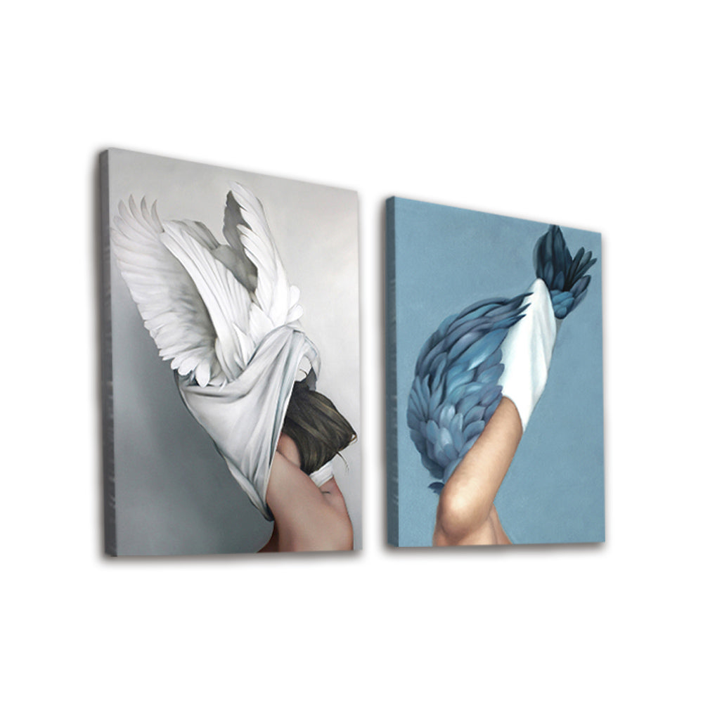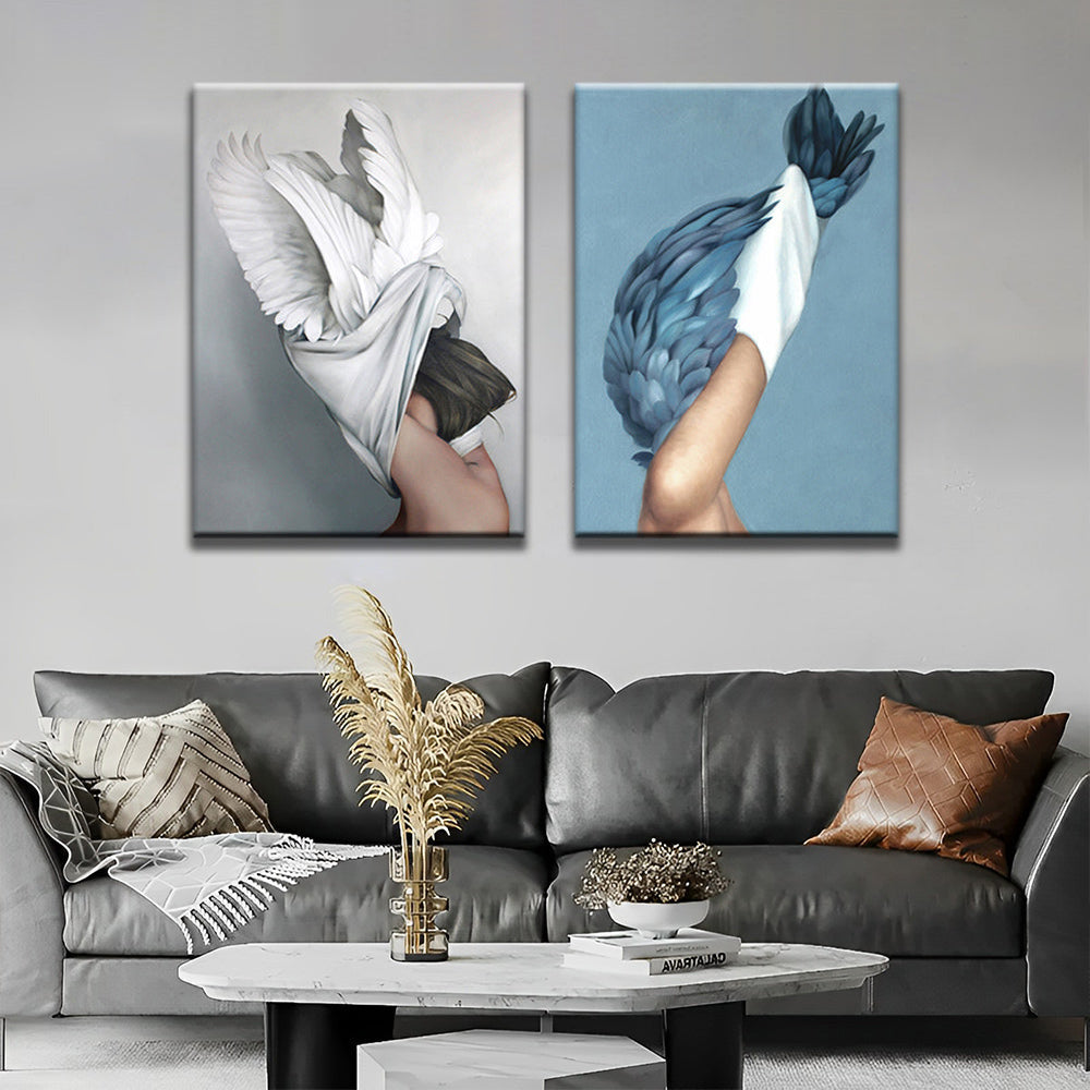 Vrouw en Vogel Abstracte Kunst 2 Platen Schilderen op Nummers