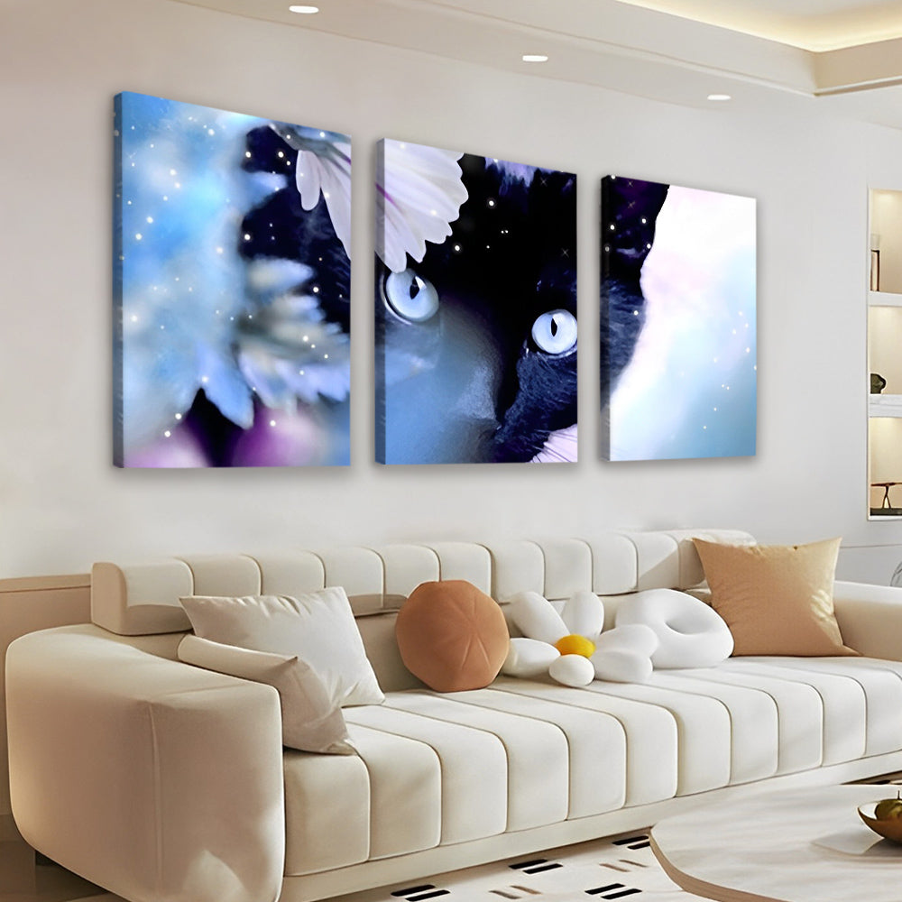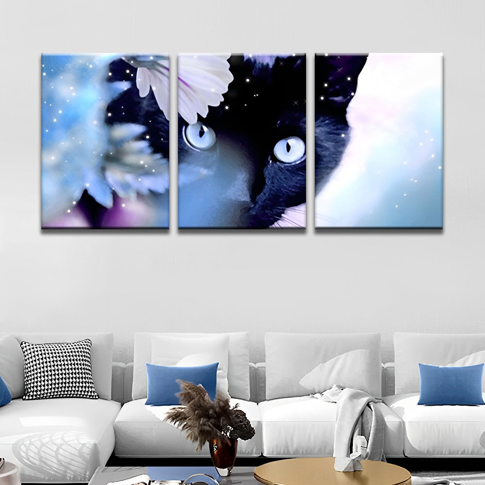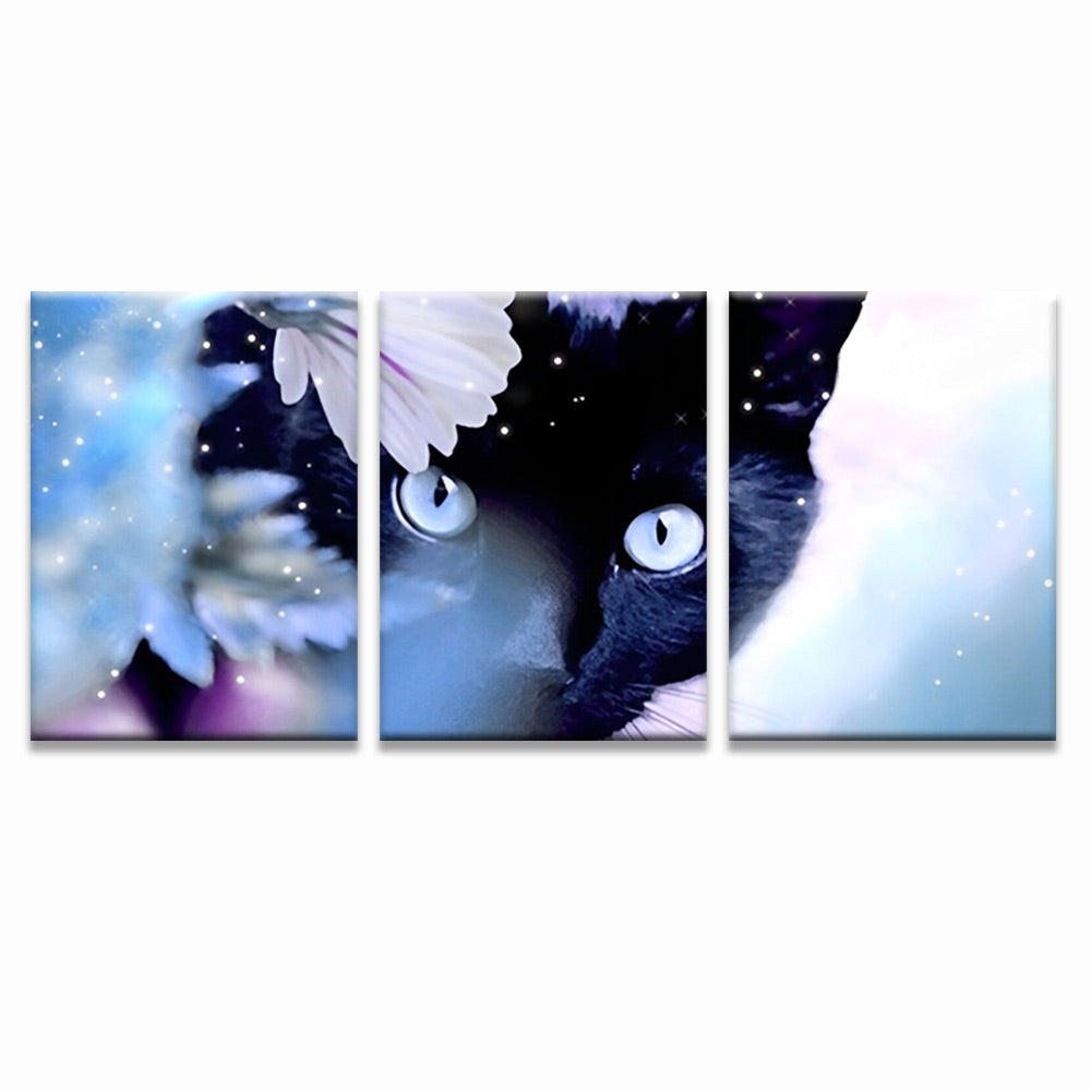Zwarte Kat in de Sneeuw 3 Platen Schilderen op Nummers