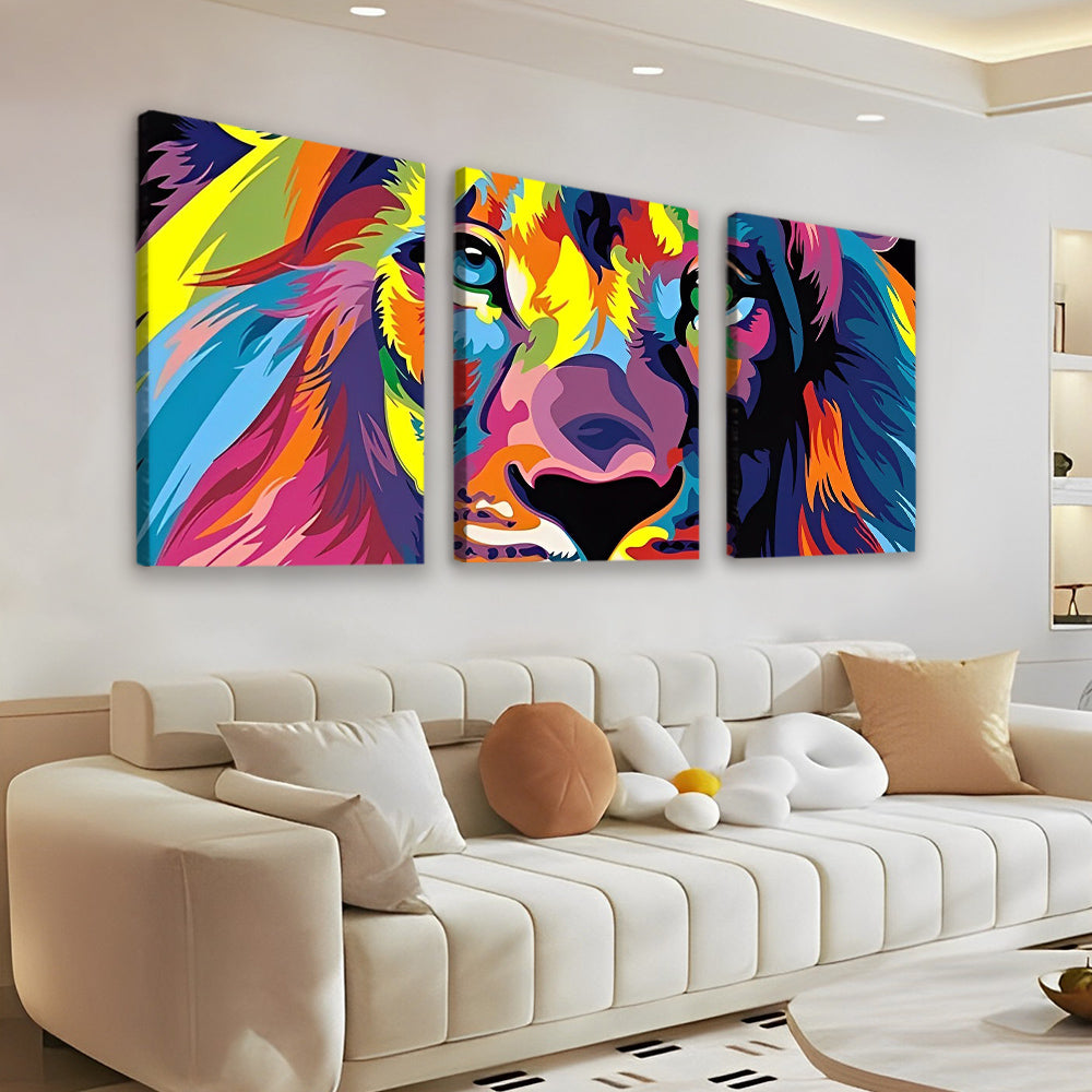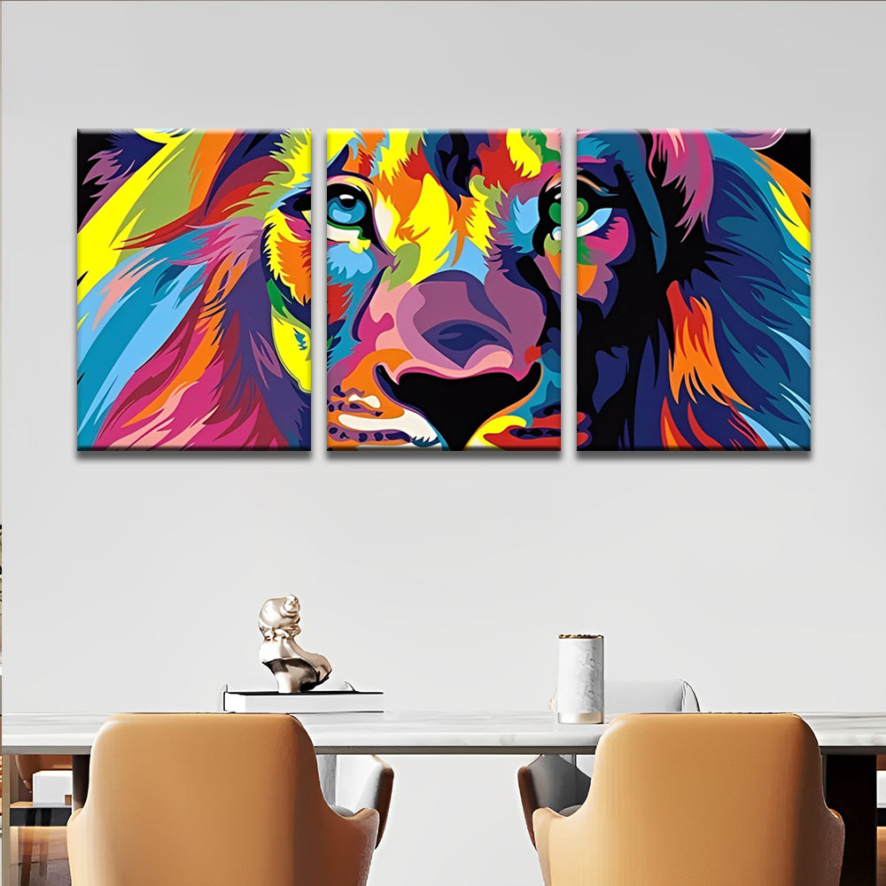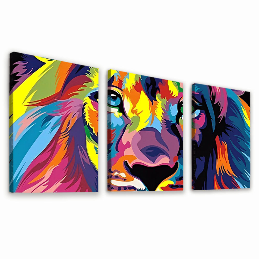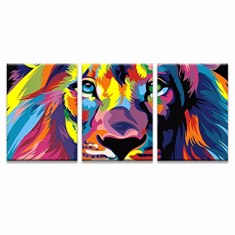 Kleurrijk Leeuwengezicht 3 Platen Schilderen op Nummers