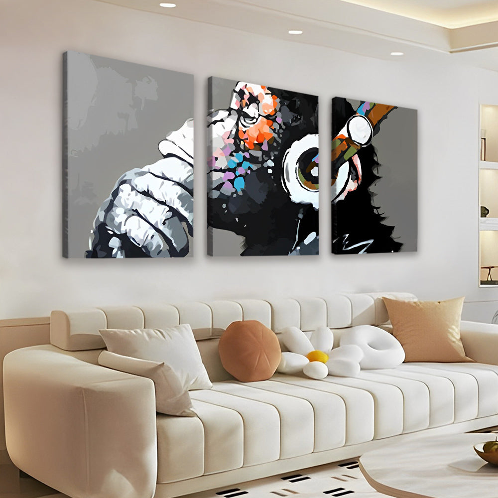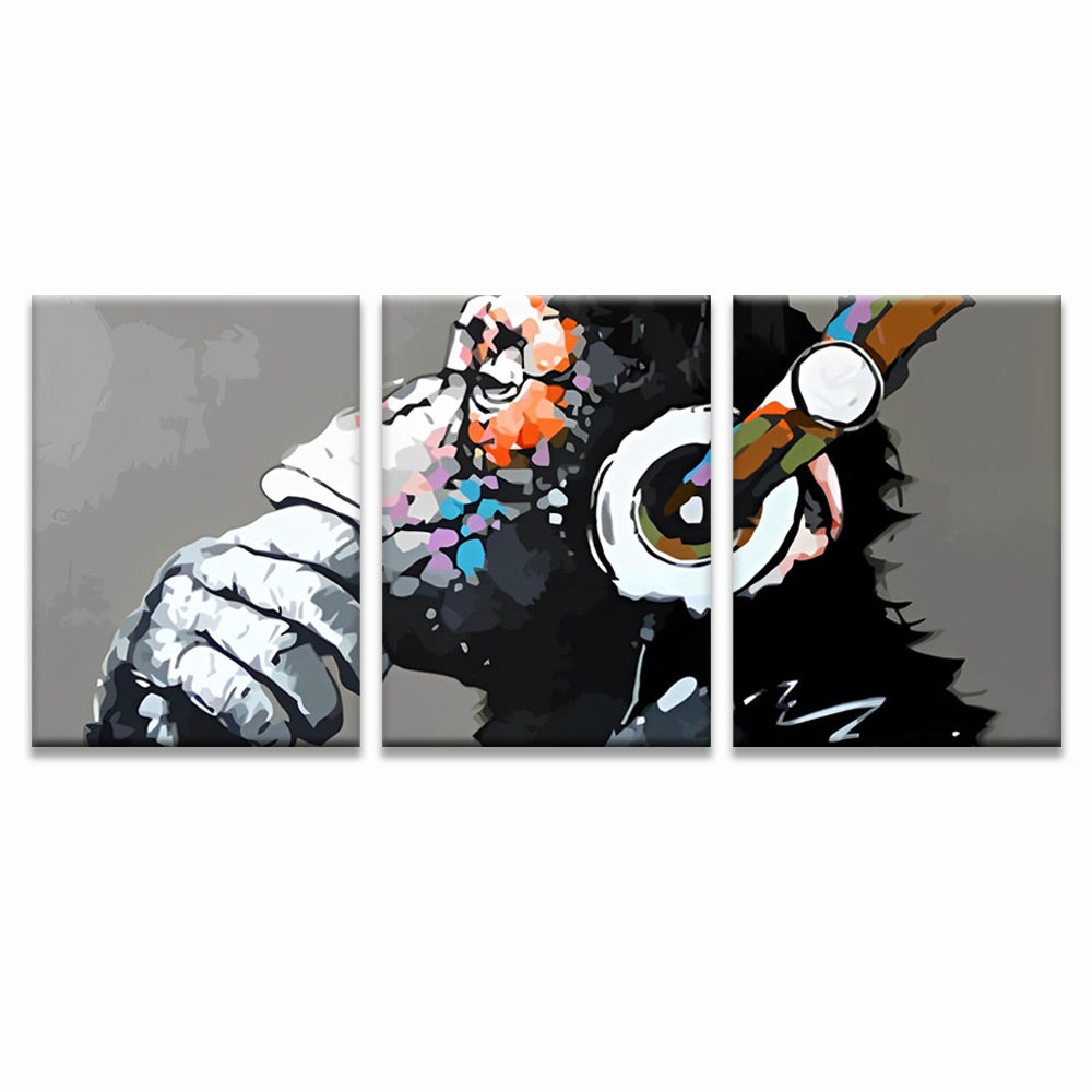 Aap met Koptelefoon 3 Platen Schilderen op Nummers