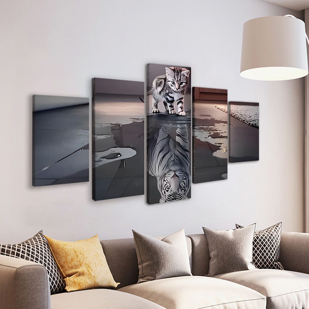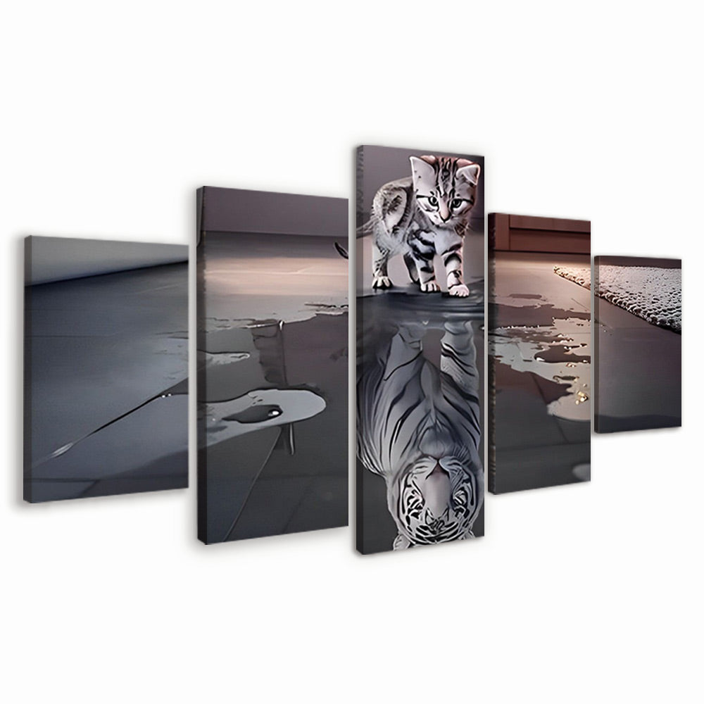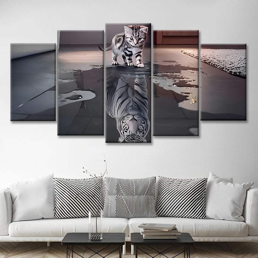 Kat en Tijger in Spiegelbeeld 5 Platen Schilderen op Nummers