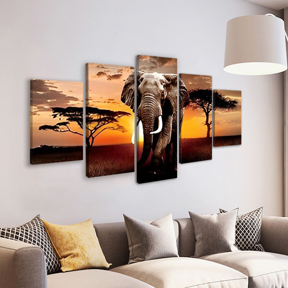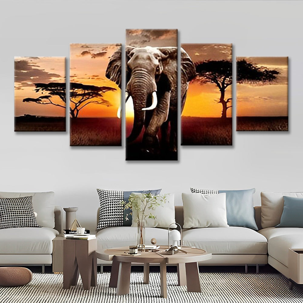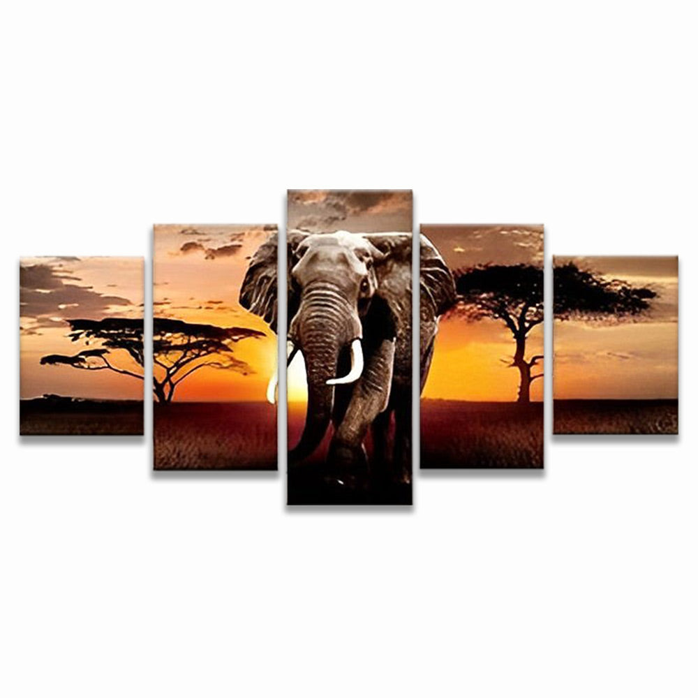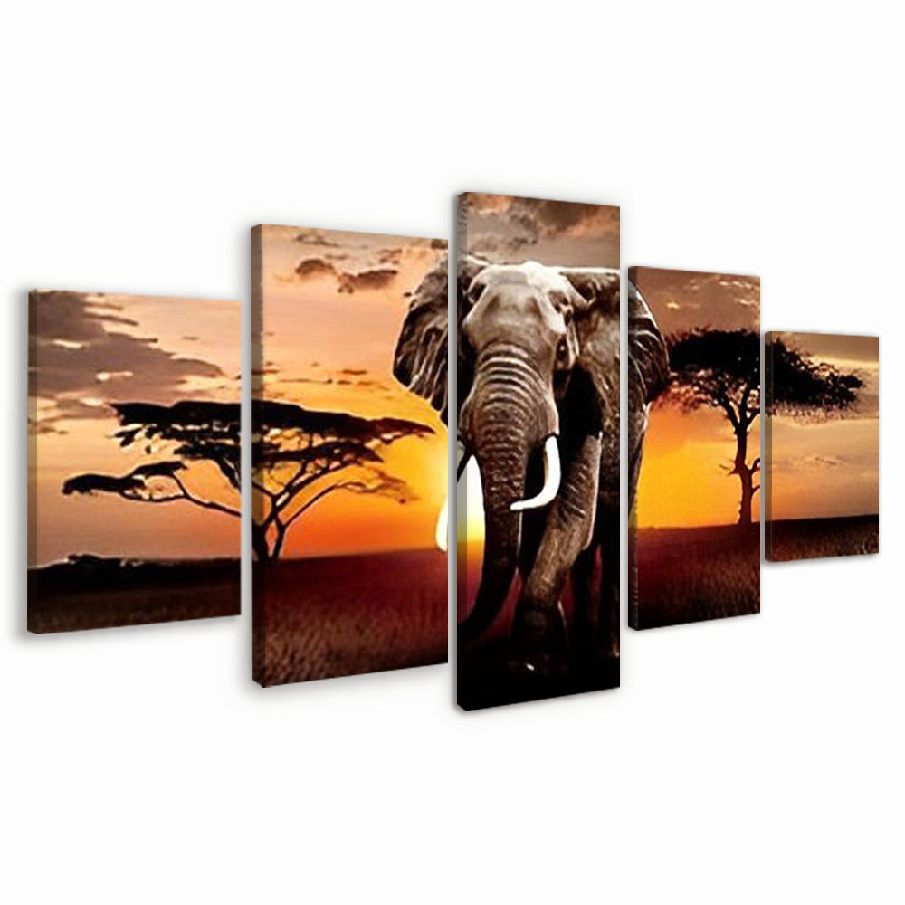 Olifanten bij Zonsondergang 5 Platen Schilderen op Nummers