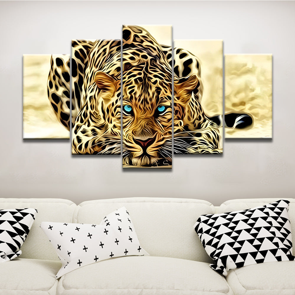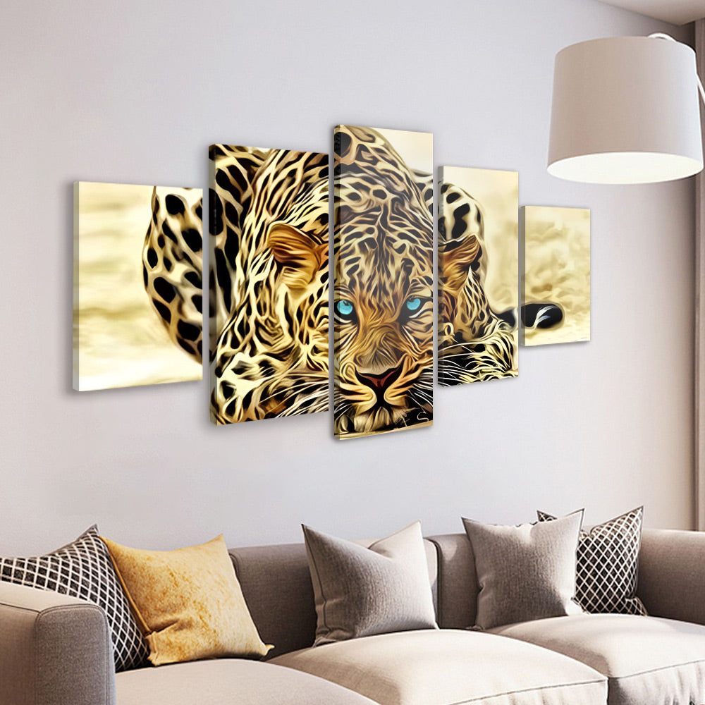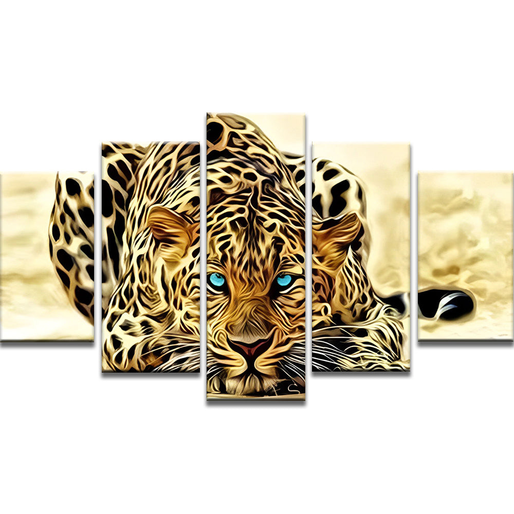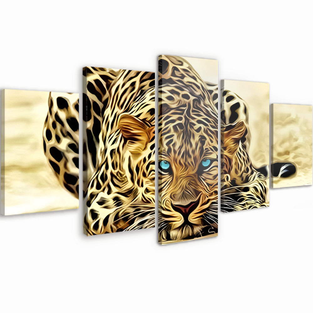Blauwe Ogen Gouden Luipaard 5 Platen Schilderen op Nummers