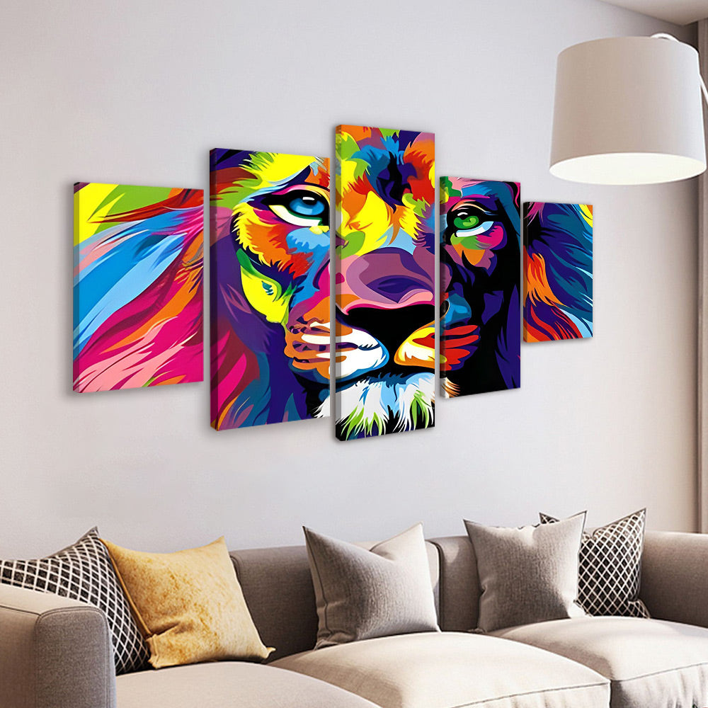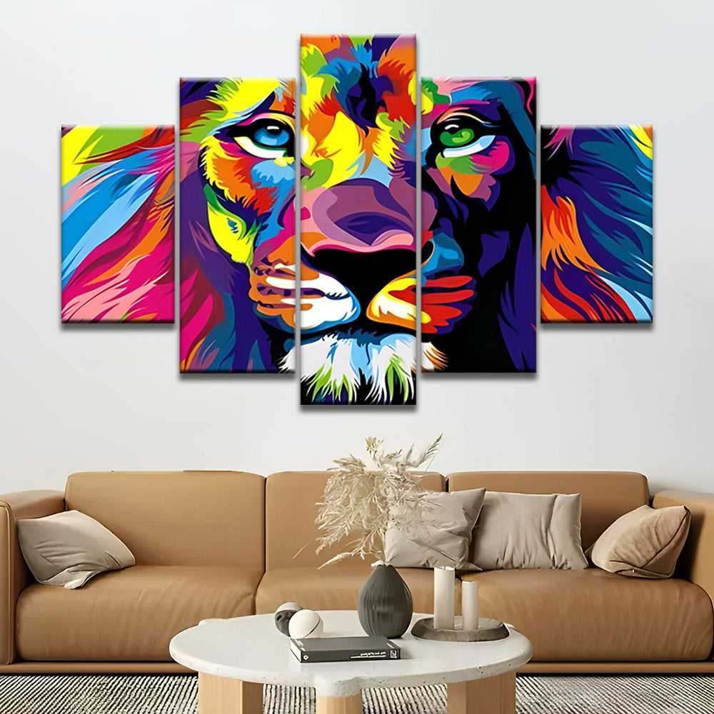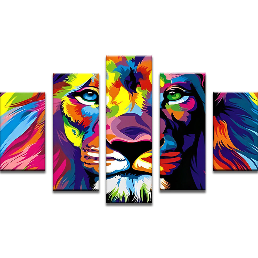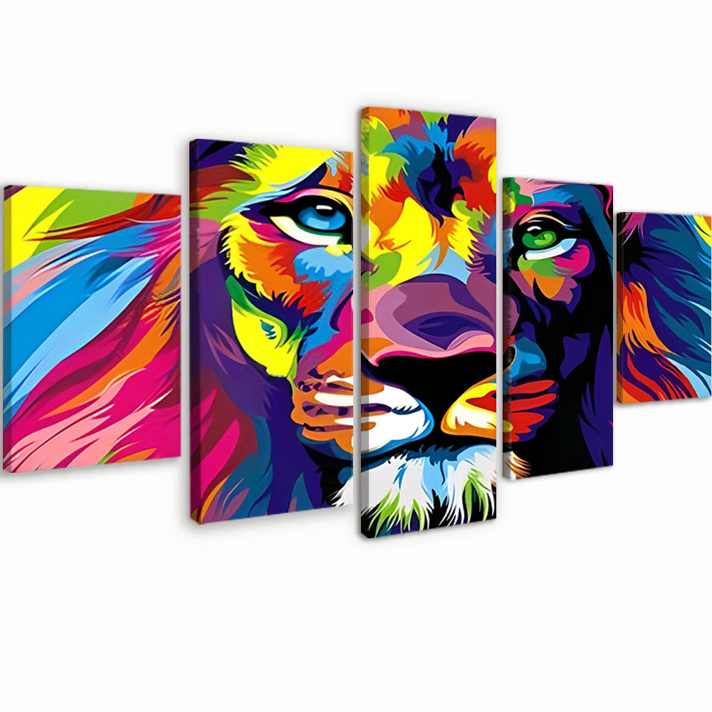 Regenboog Gekleurd Leeuwengezicht 5 Platen Schilderen op Nummers