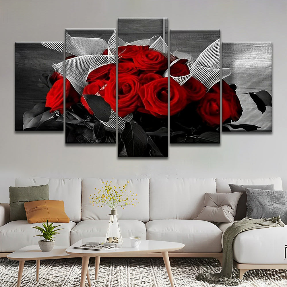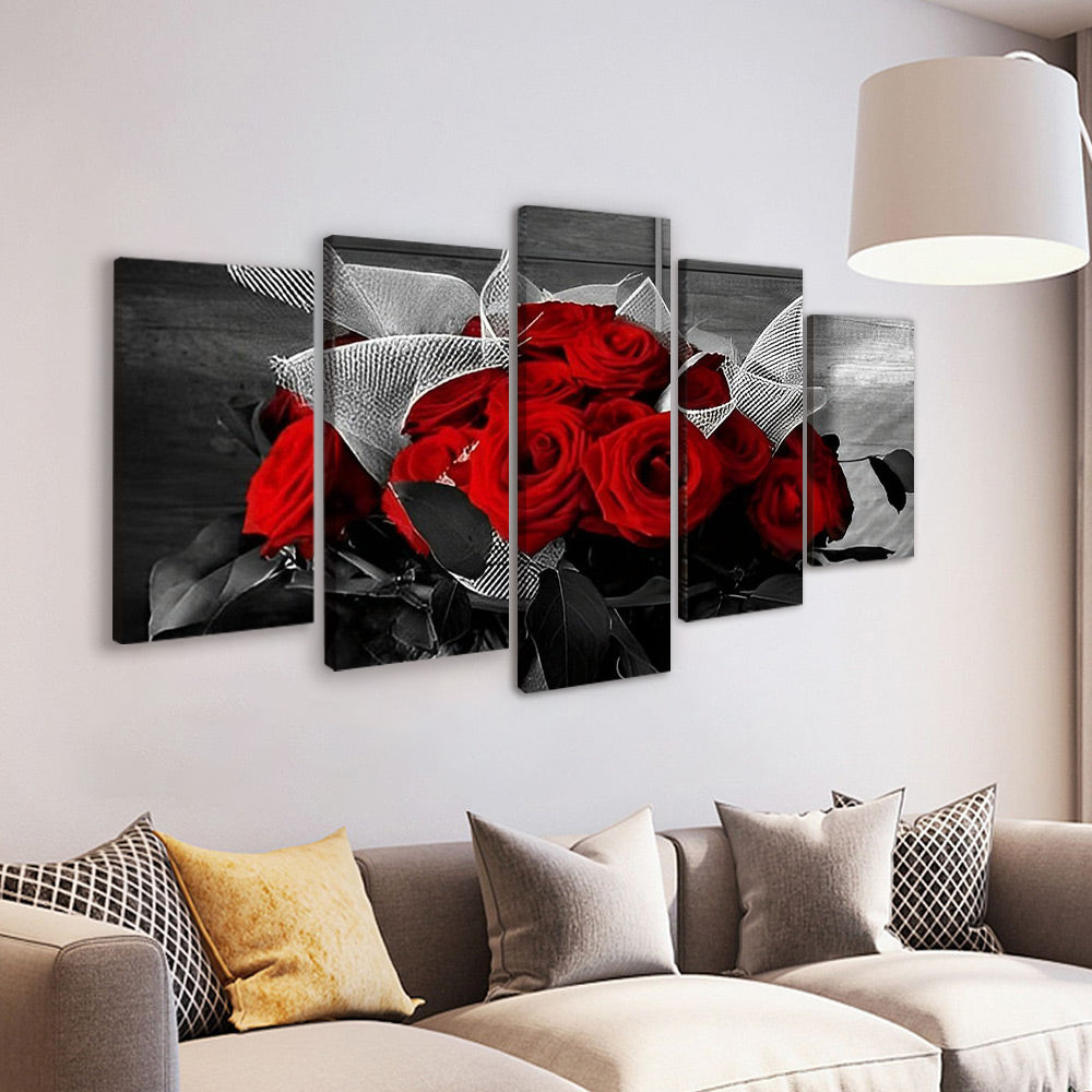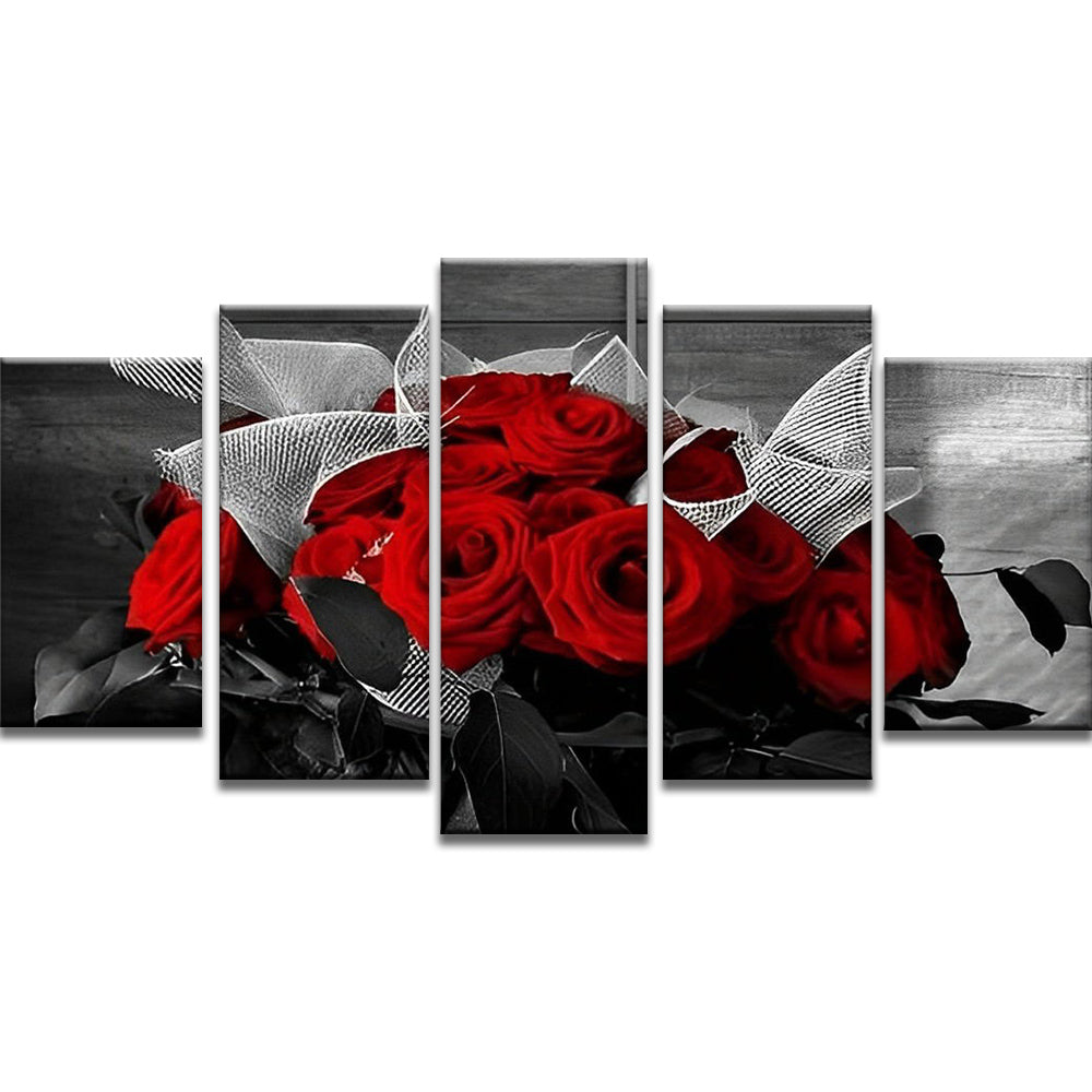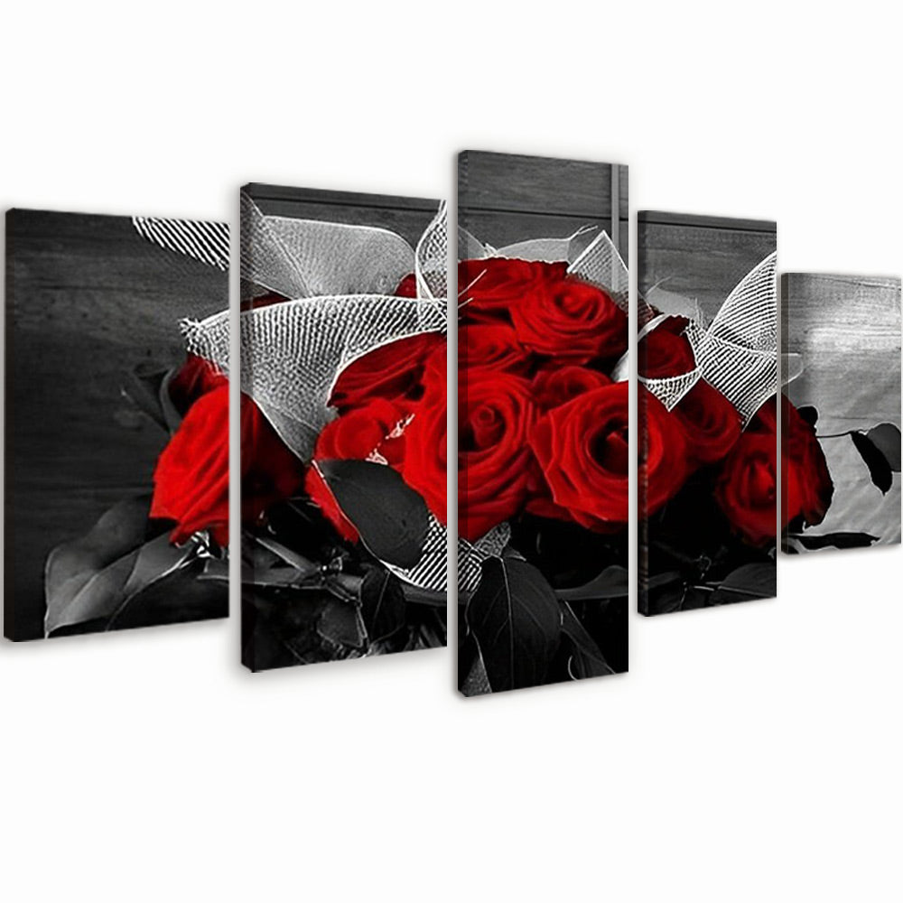 Helderrode Rozen op Zwarte Achtergrond 5 Platen Schilderen op Nummers