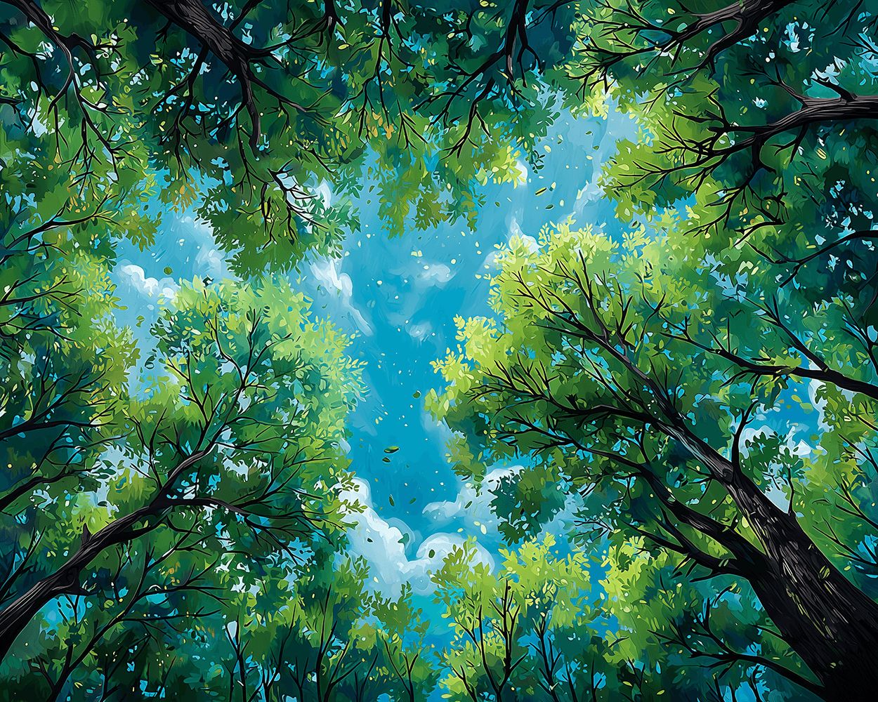 Boomkruinen onder Blauwe Lucht Schilderen op Nummers