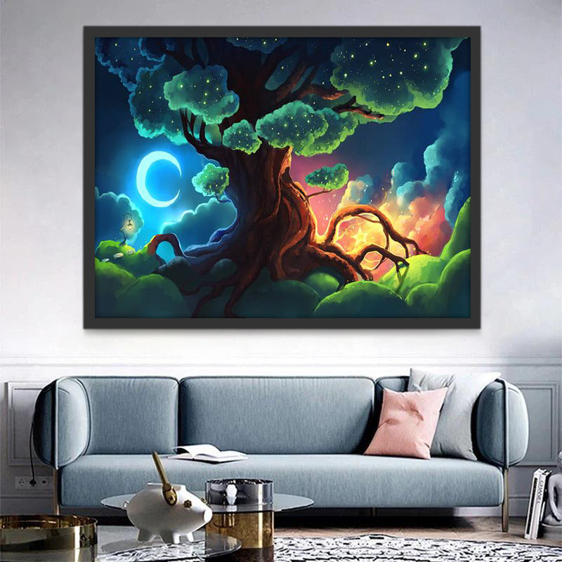 Groene Boom onder de Maansikkel Schilderen op Nummers