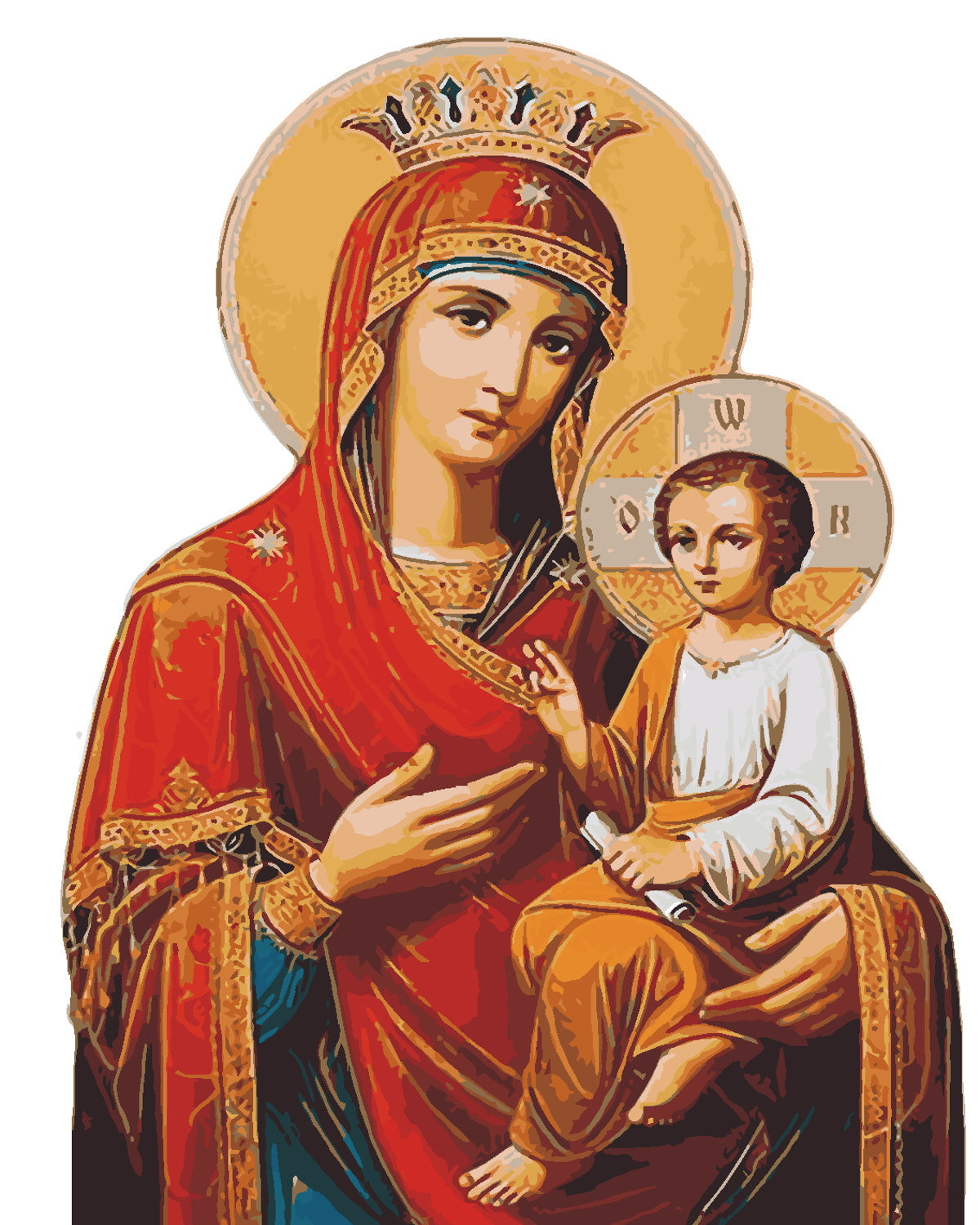 Vrouw in Rode Jurk en Kind Christendom Schilderen op Nummers