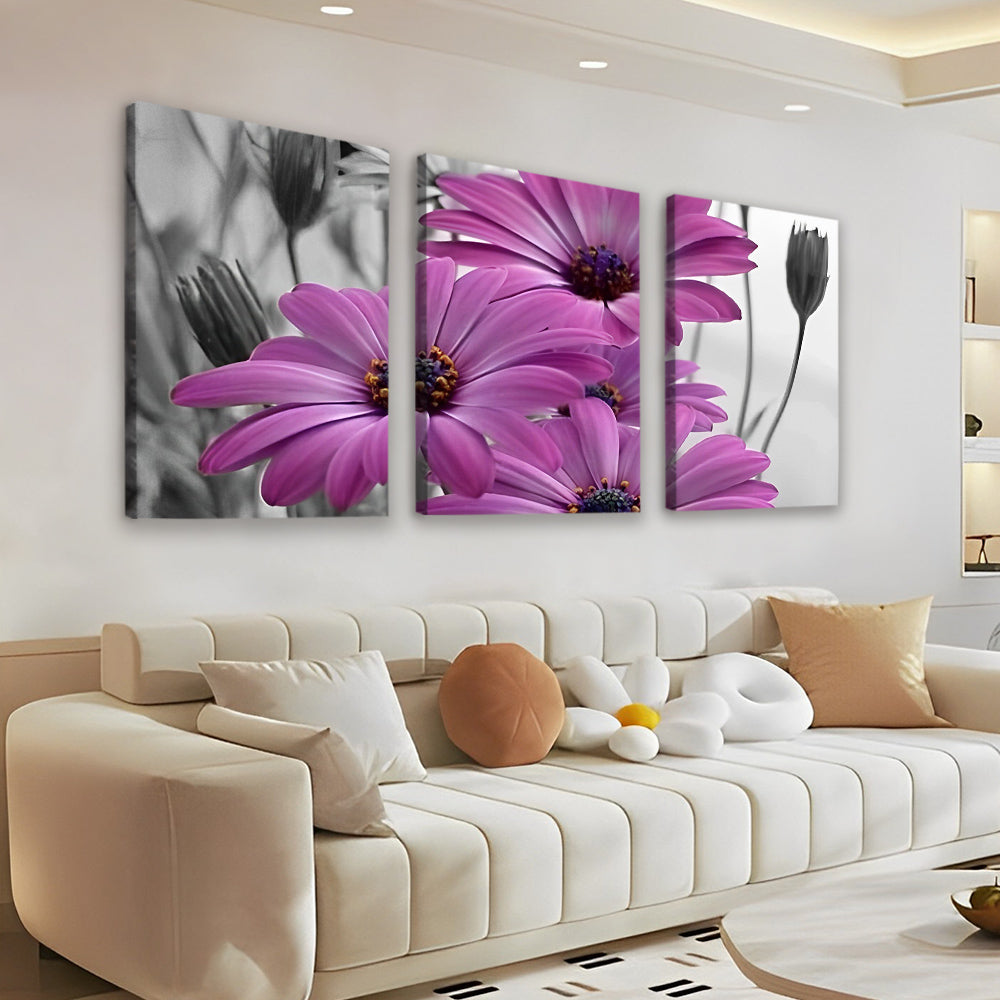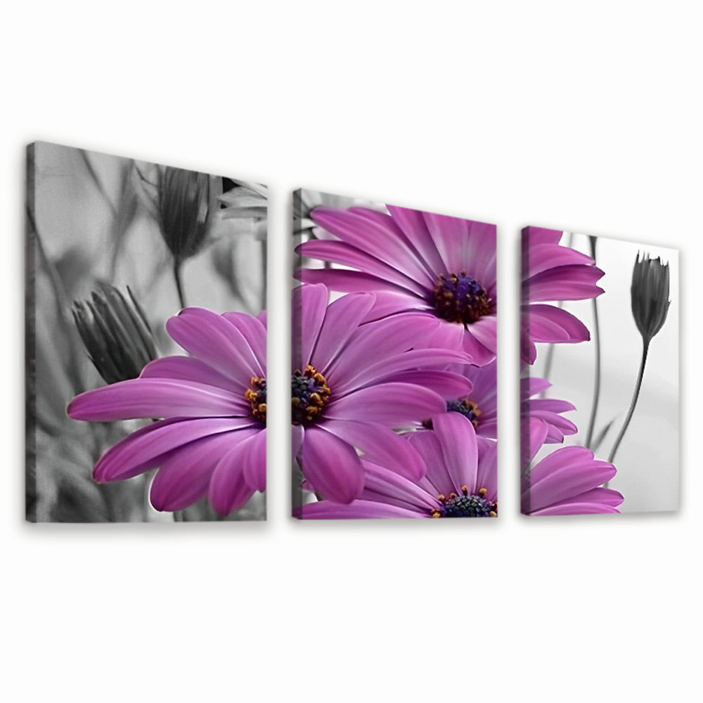 Paarse Chrysanten 3 Platen Schilderen op Nummers