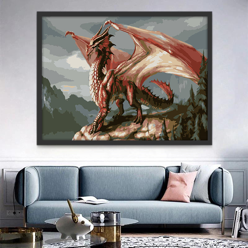 Een vliegende draak op de bergtop Schilderen op Nummers