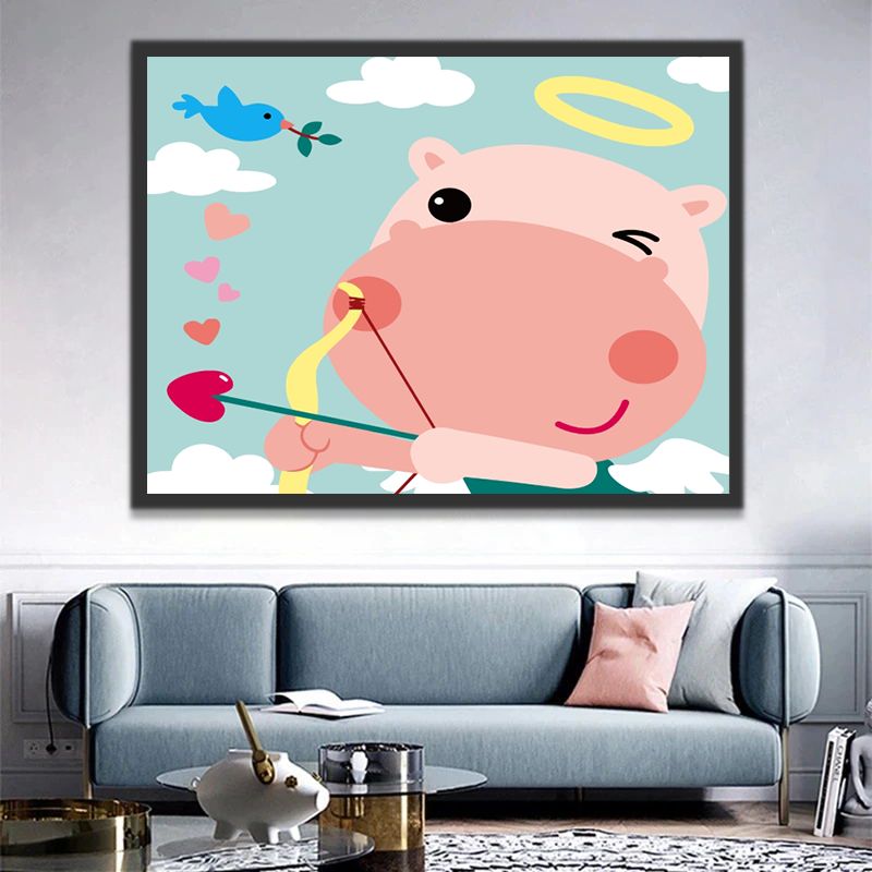 Schattig Cartoon Nijlpaard Schilderen op Nummers Kinderen