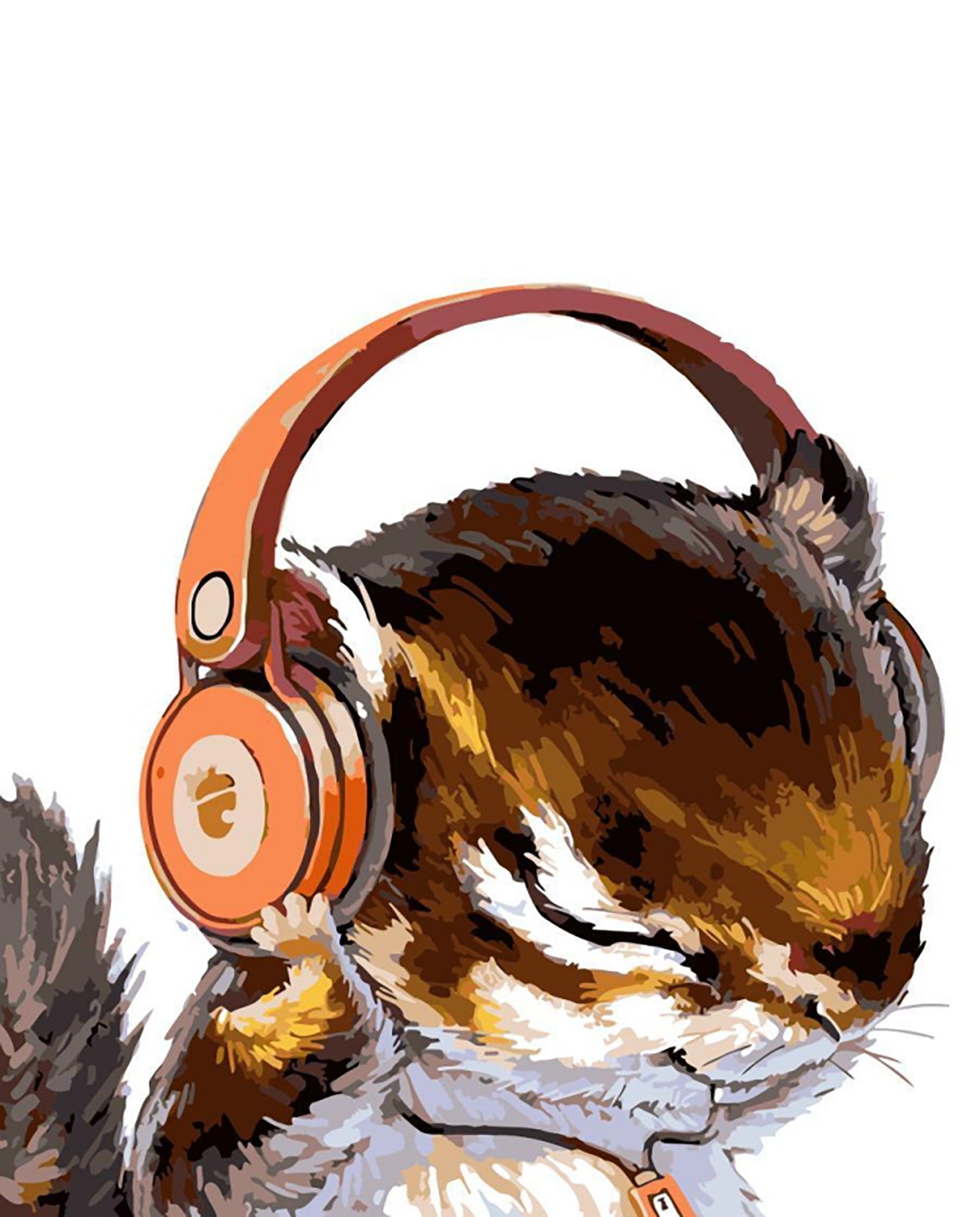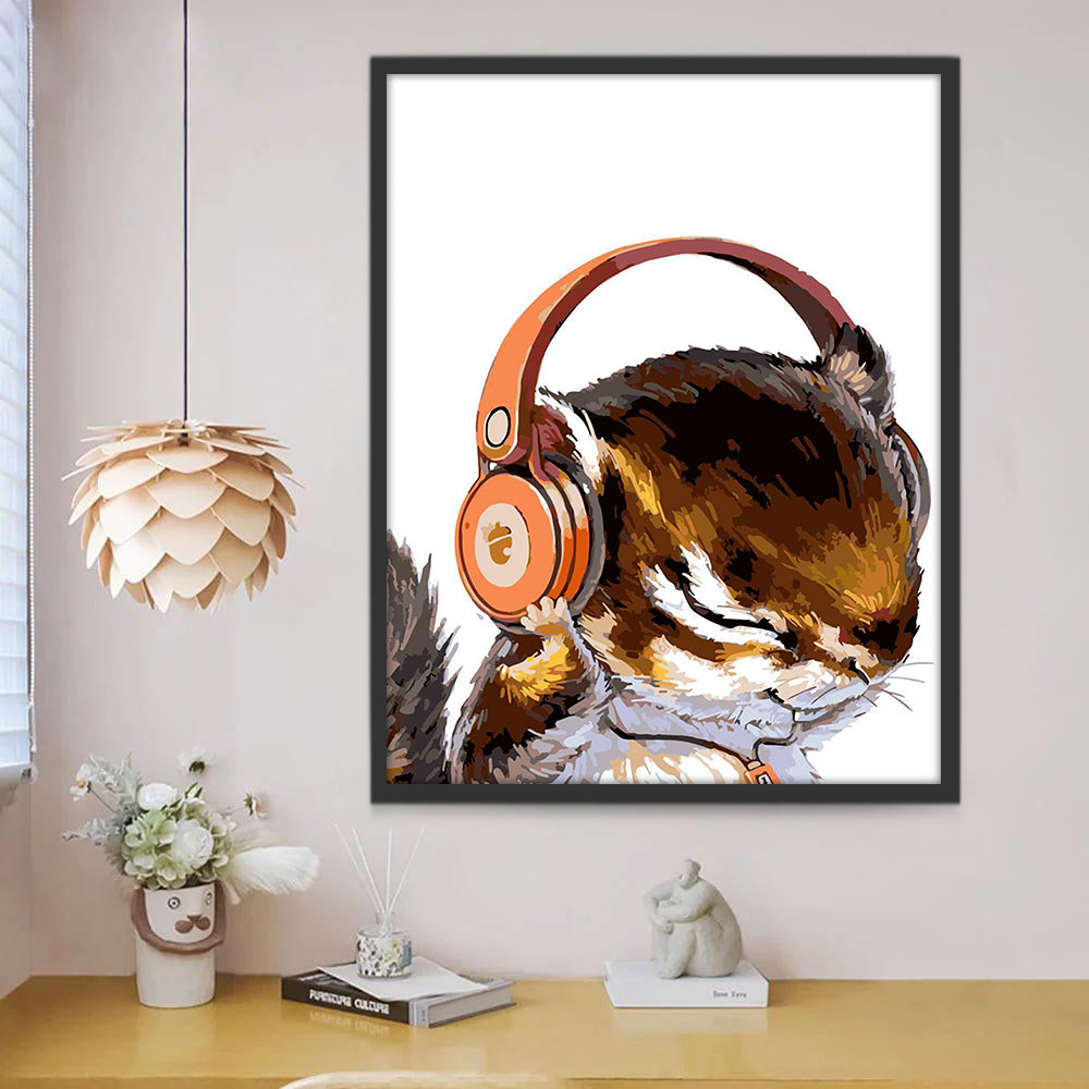 Eekhoorn met Koptelefoon op Schilderen op Nummers