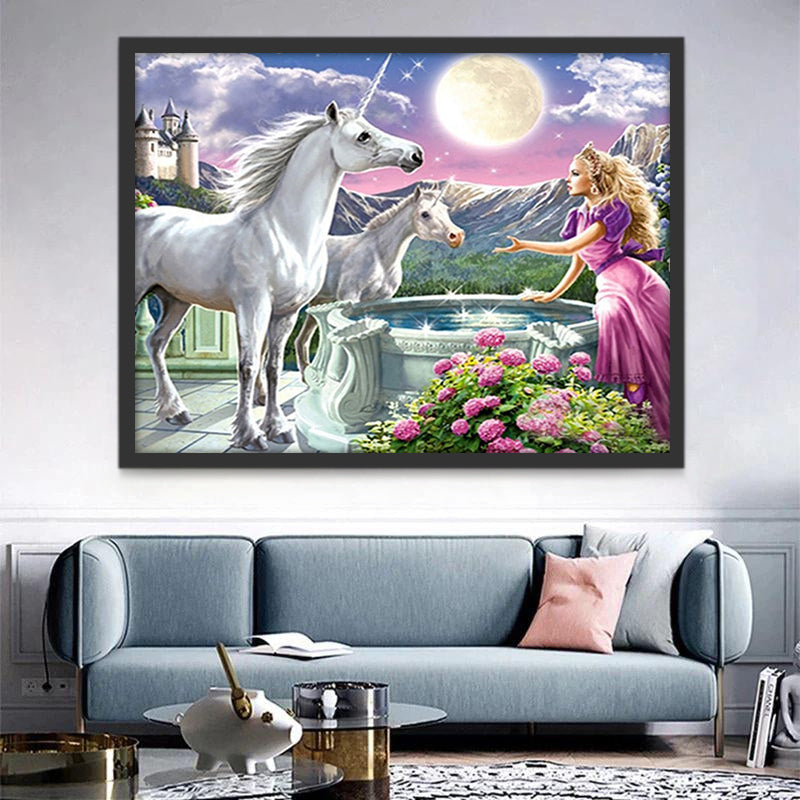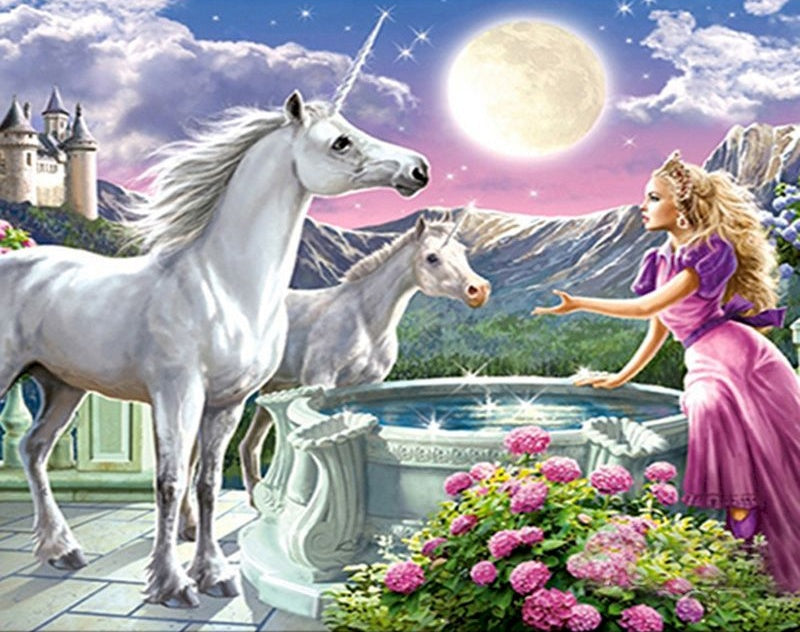 Prinses en Twee Eenhoorns Schilderen op Nummers