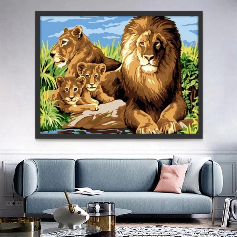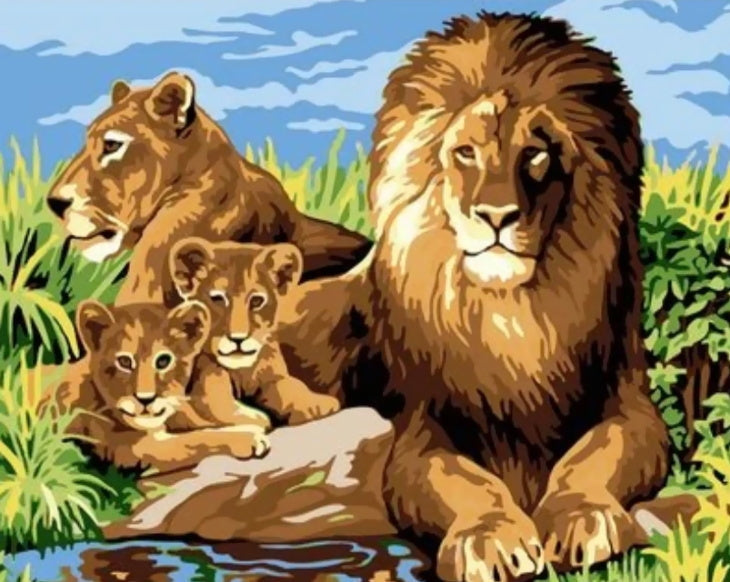 Leeuwenfamilie aan de Waterkant Schilderen op Nummers