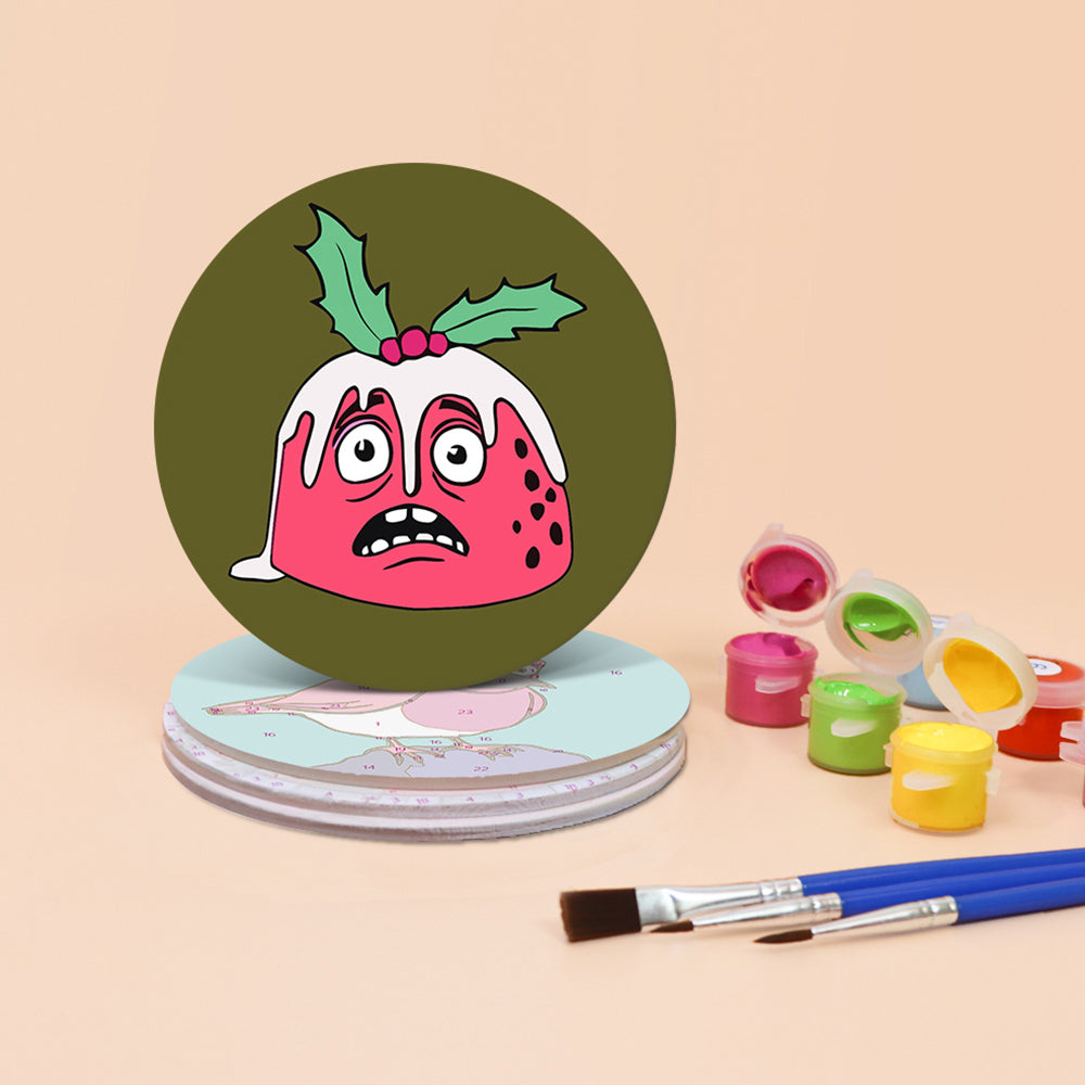 4 Stuks Kerstmis Dieren Onderzetters Schilderen op Nummers
