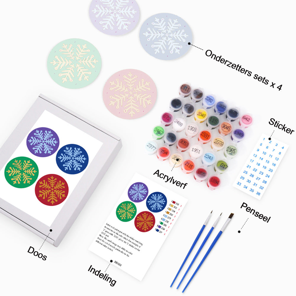 4 Stuks Kerstmis Sneeuwvlok Onderzetters Schilderen op Nummers