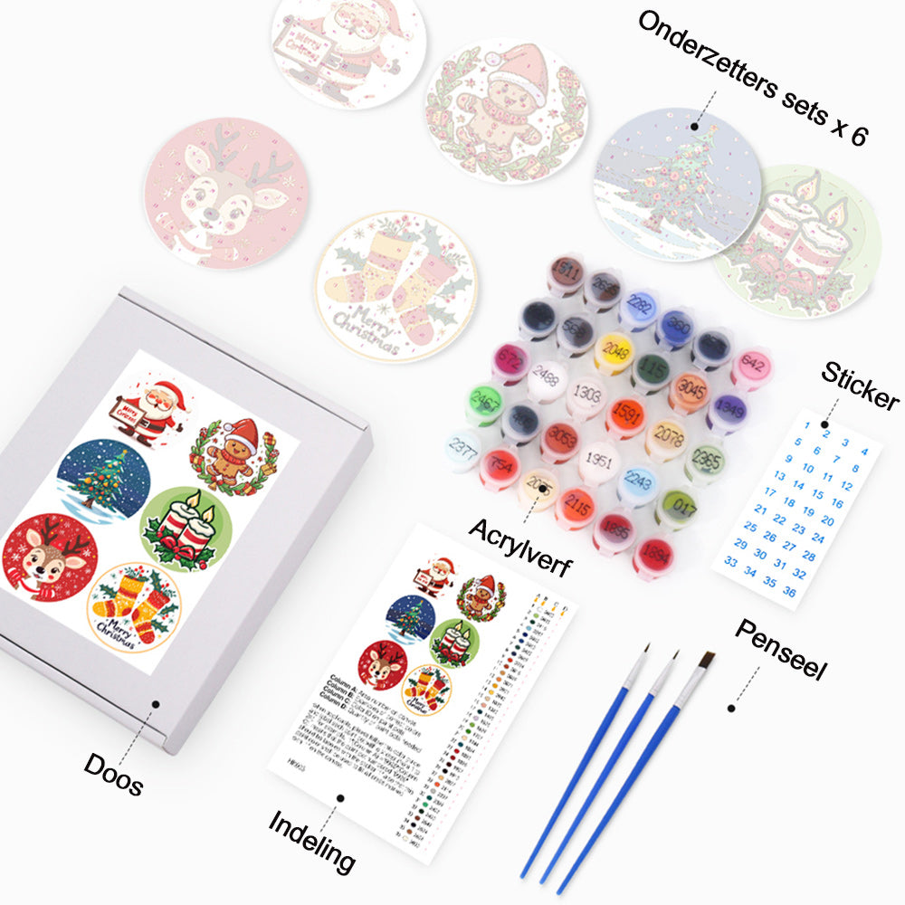 6 Stuks Cartoon Kerstmis Onderzetters Schilderen op Nummers