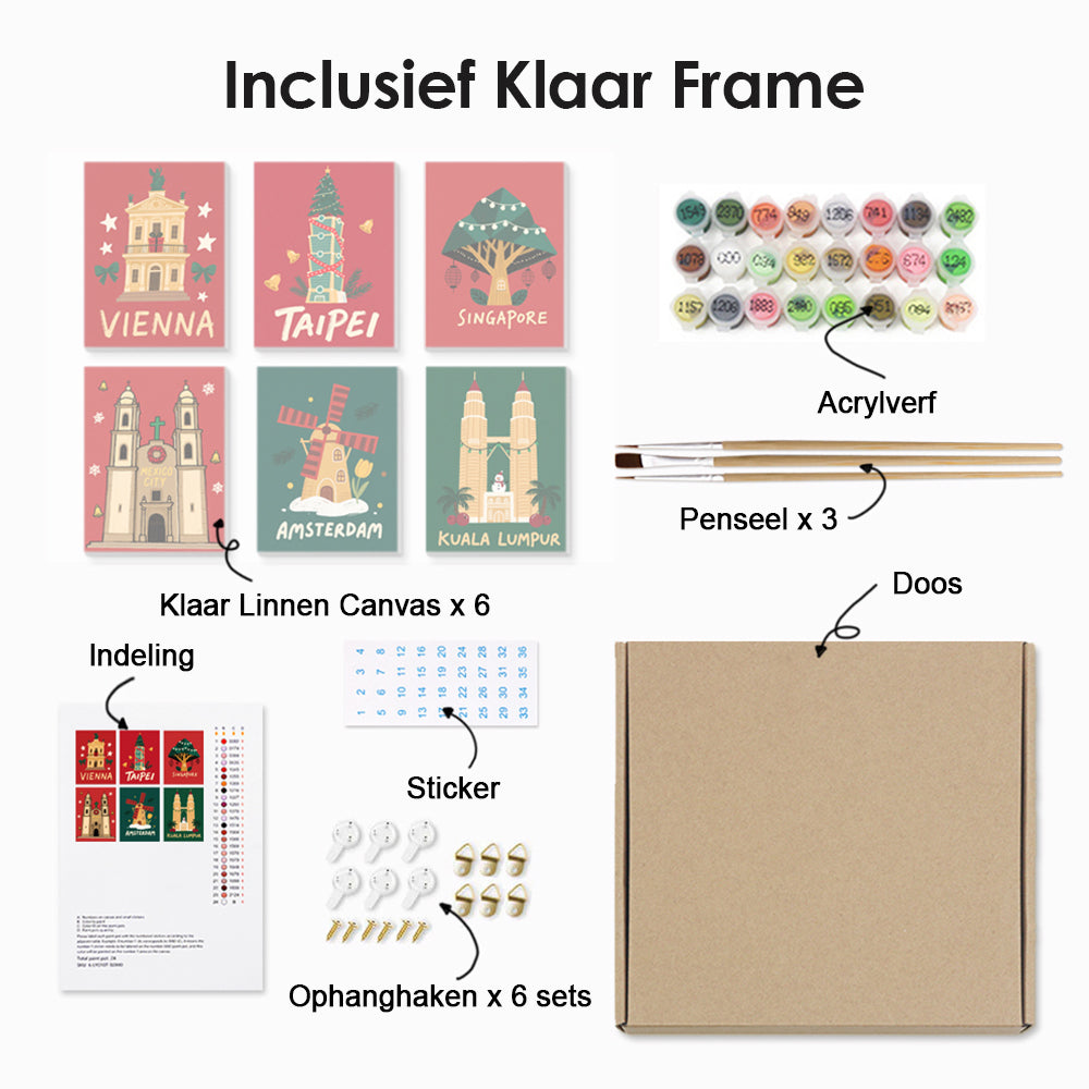 Bezienswaardigheden over de Hele Wereld Vieren Kerstmis 6 Stuks Mini Schilderen op Nummers