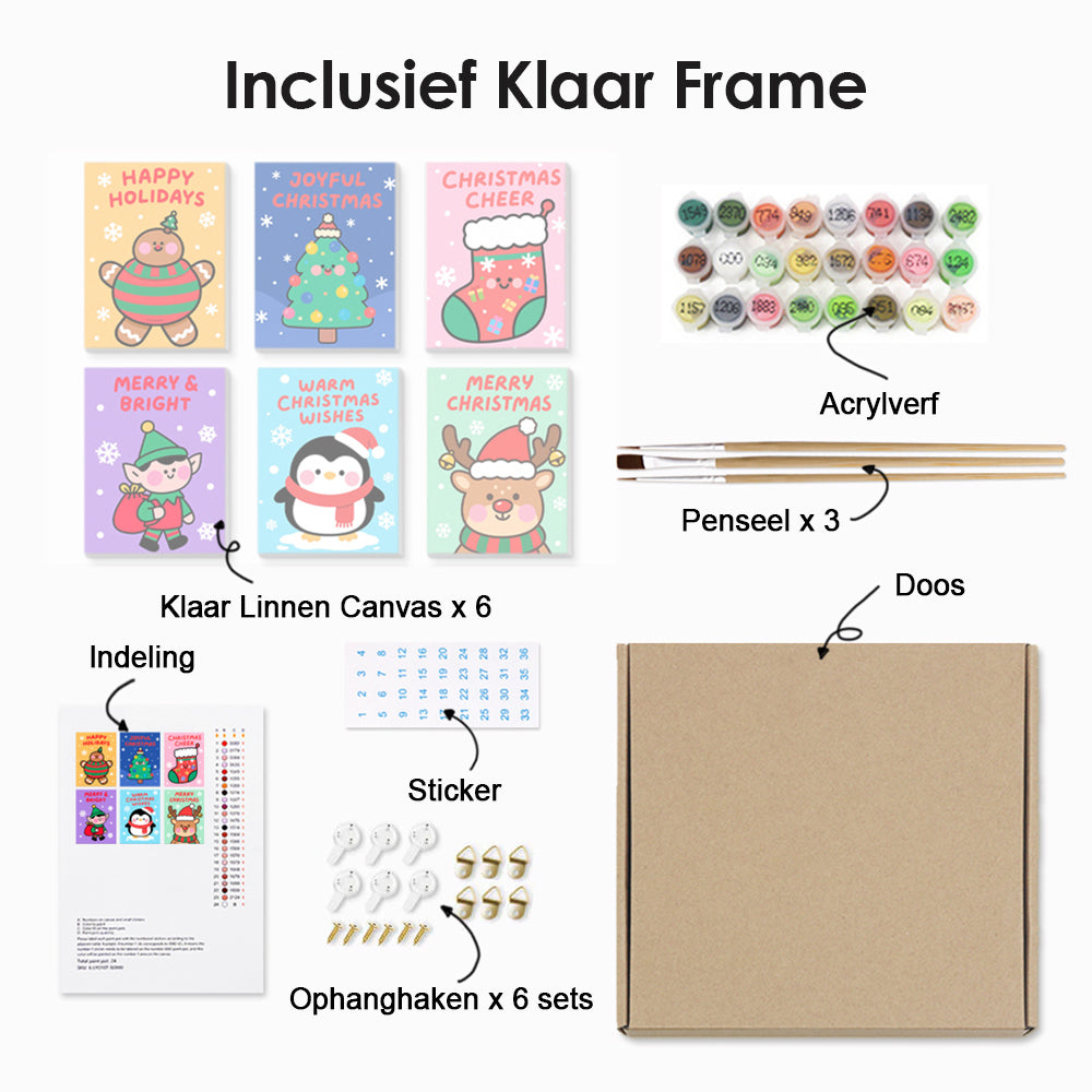 Een Vrolijke Kerst 6 Stuks Mini Schilderen op Nummers