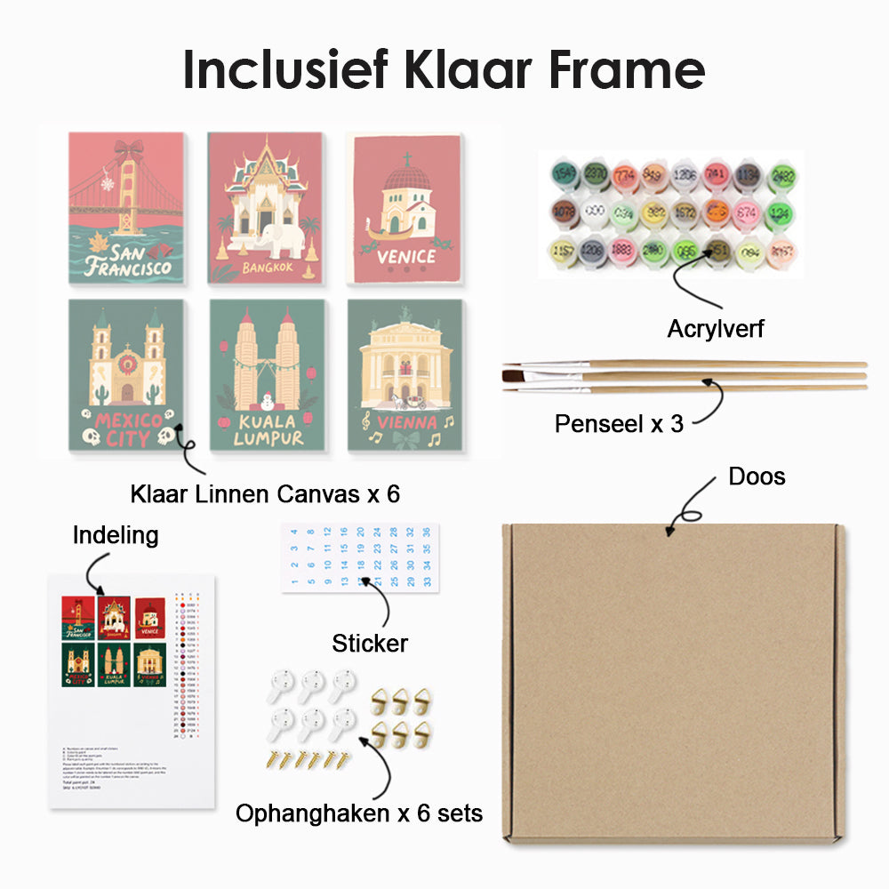 Kerstmis in Beroemde Steden 6 Stuks Mini Schilderen op Nummers