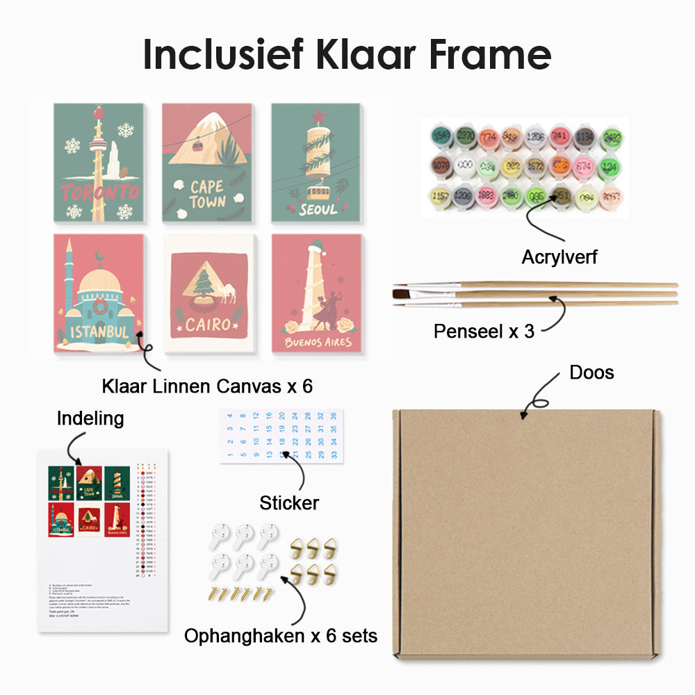 Kerstmis in Verschillende Steden 6 Stuks Mini Schilderen op Nummers