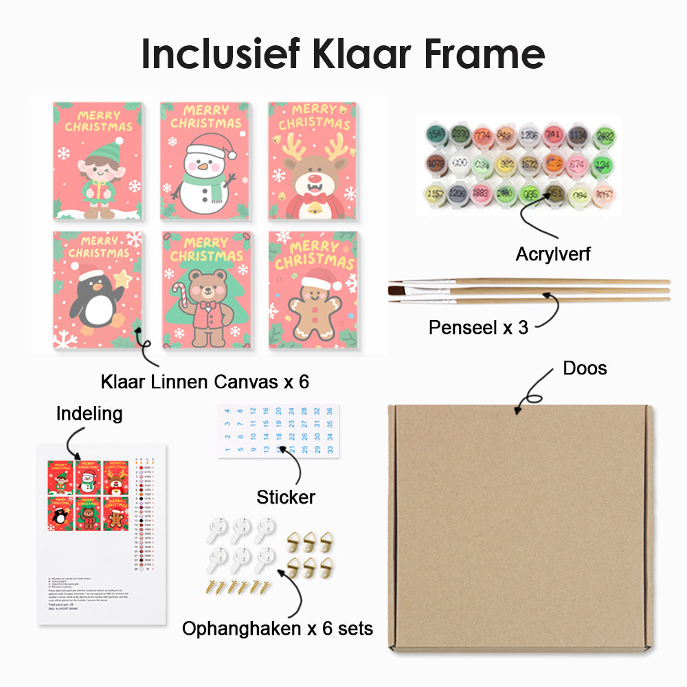 Vrolijk Kerstfeest voor de Dieren 6 Stuks Mini Schilderen op Nummers