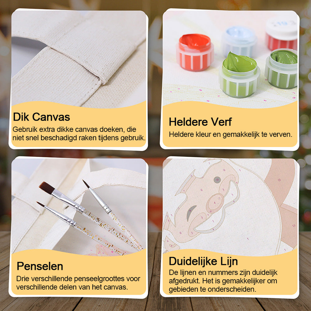 Vrolijke Kerstman Canvas Tote Bag Schilderen op Nummers