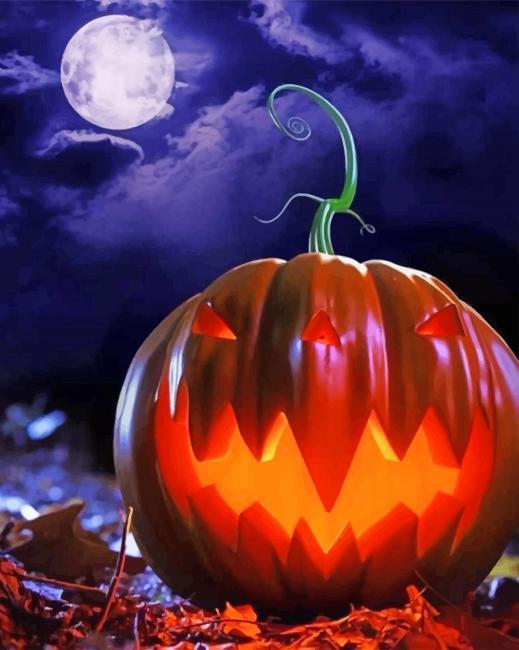 Jack-o'-lantern onder een Paarse Hemel Schilderen op Nummers