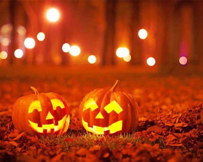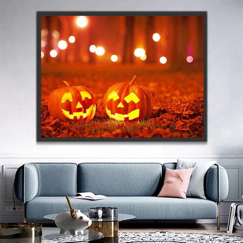 Twee Kleine Pompoenen op het Gras Schilderen op Nummers
