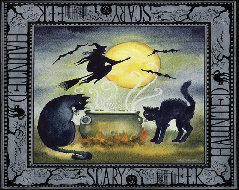 Halloween Heks, Kat, en Maan Schilderen op Nummers