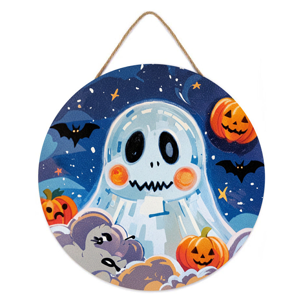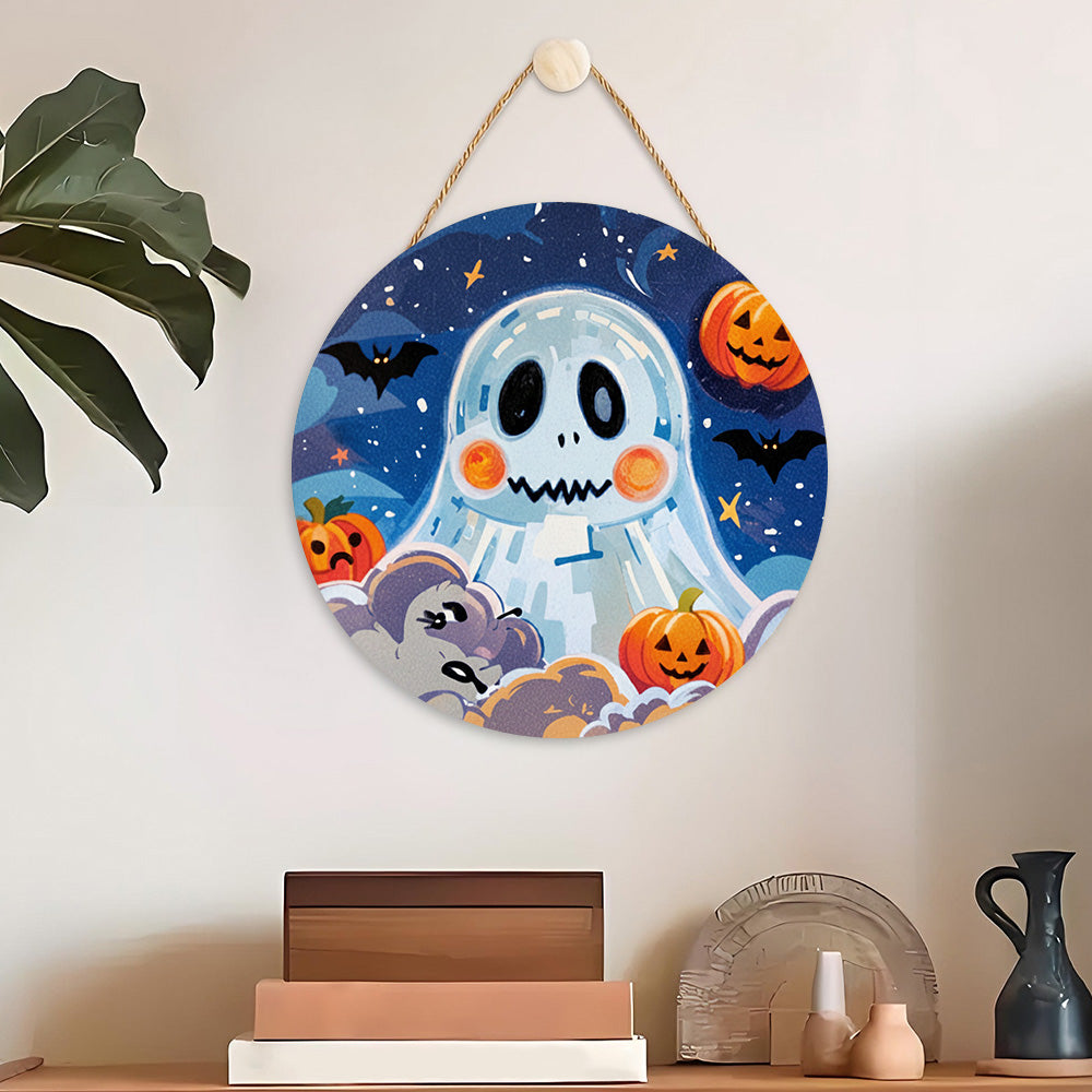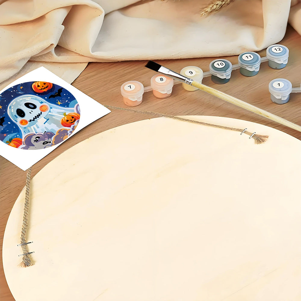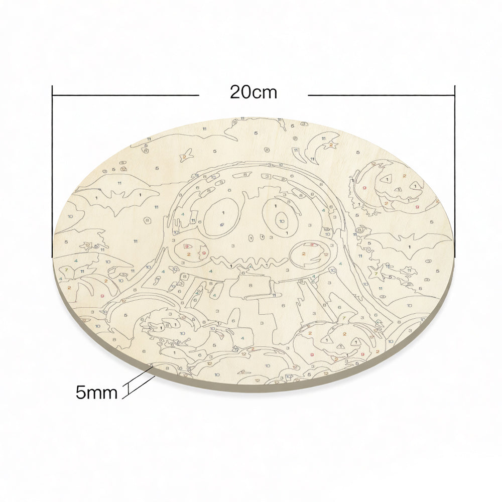 Houtschijf Schilderen op Nummers - Schattige Halloween Geest en Pompoenlantaarns