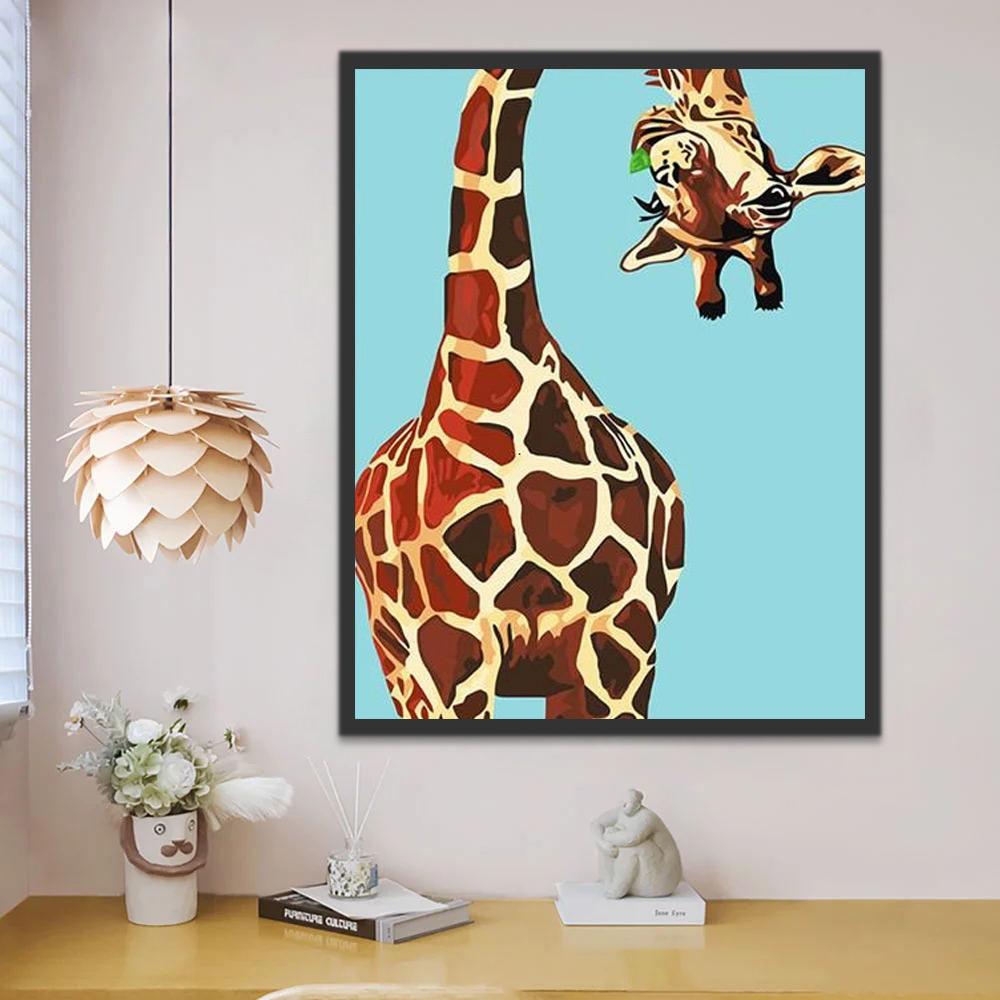 Giraffe op Blauwe Achtergrond Schilderen op Nummers