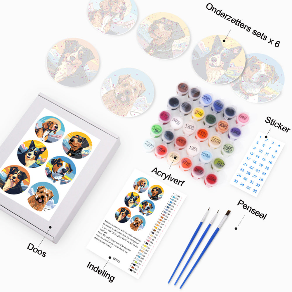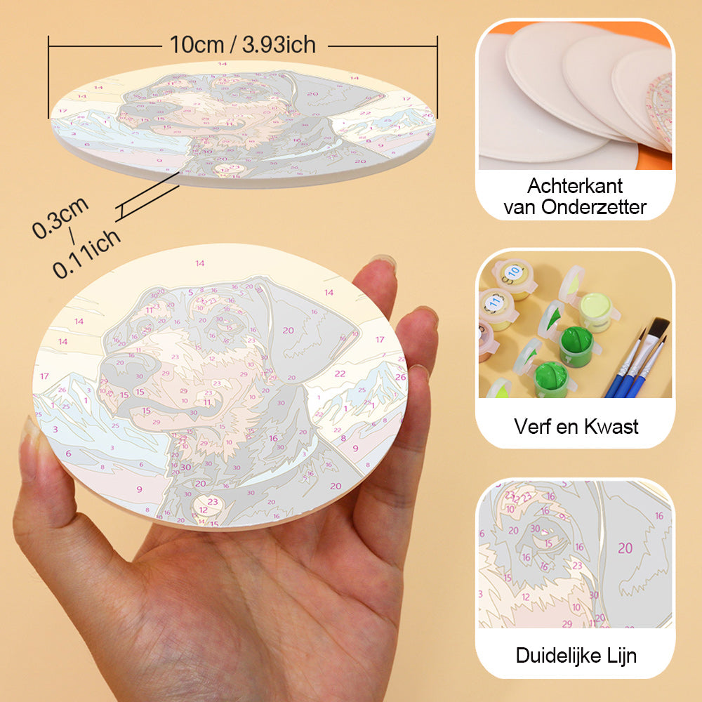 6 Stuks Honden en Bergen Onderzetters Schilderen op Nummers