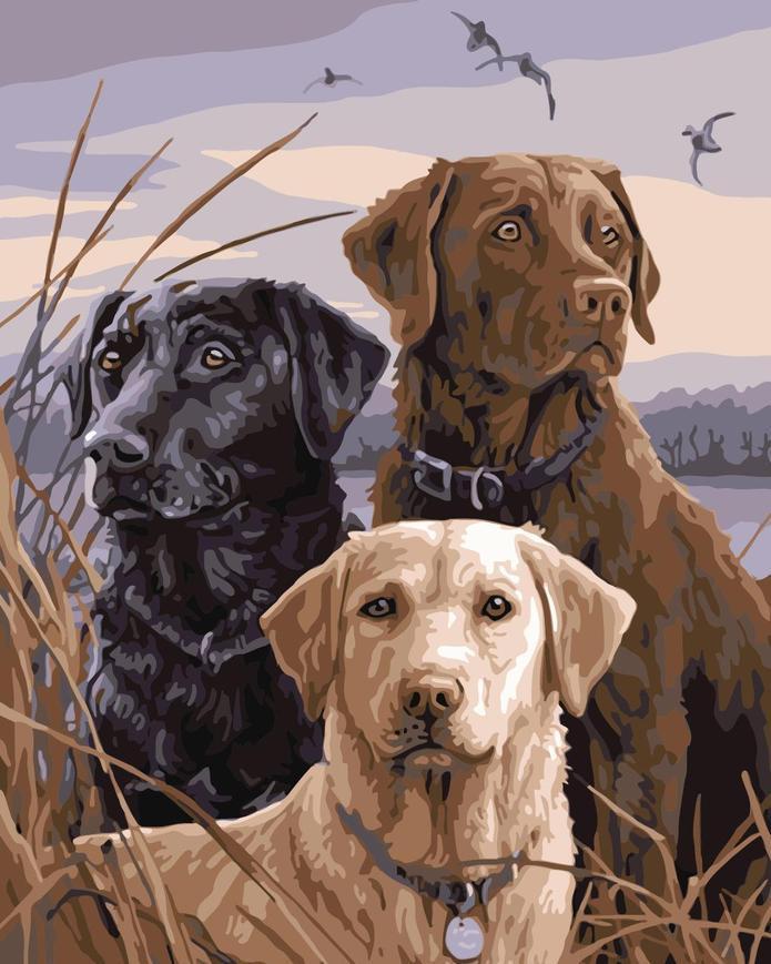 Drie Verschillend Gekleurde Labradors Schilderen op Nummers