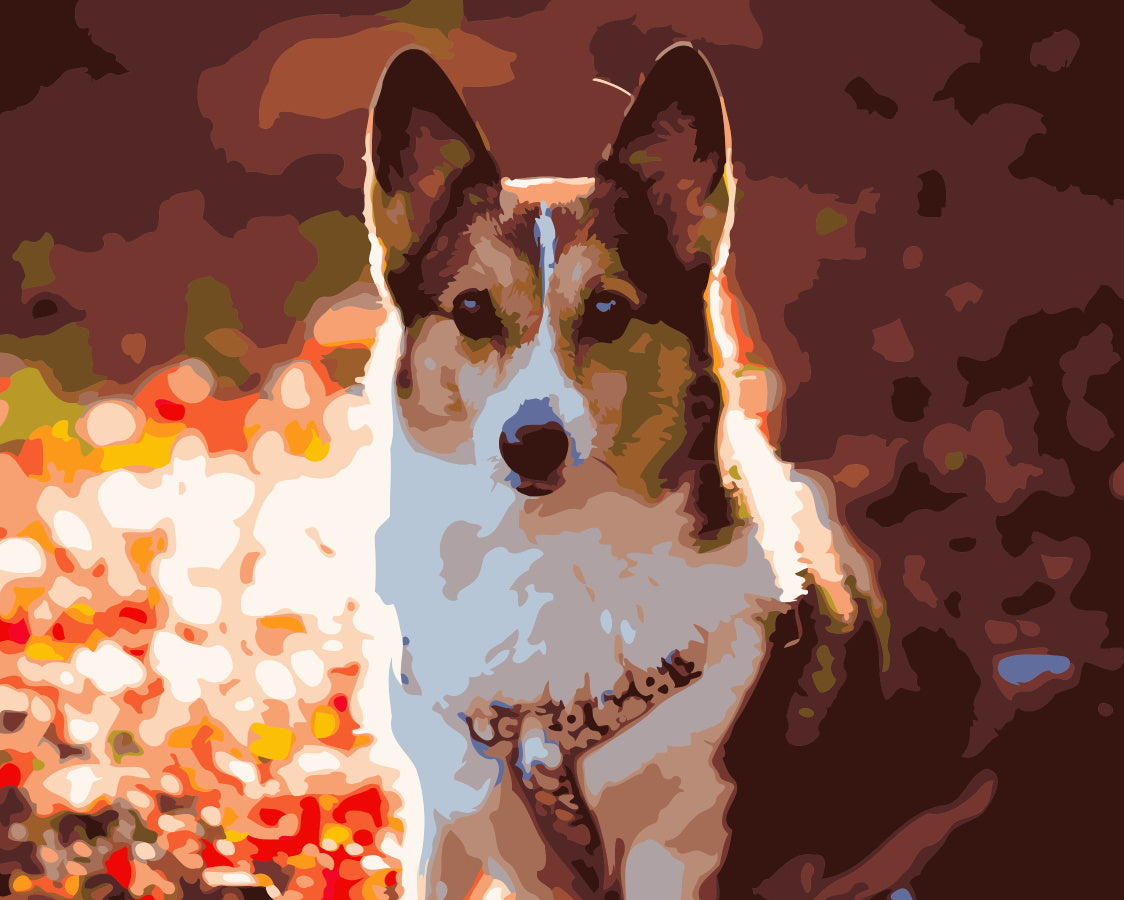 Hond Liggend op Gevallen Bladeren Schilderen op Nummers