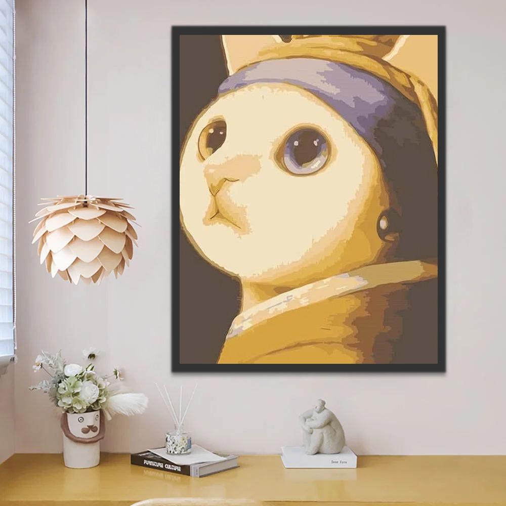 Kat met Parel Schilderen op Nummers