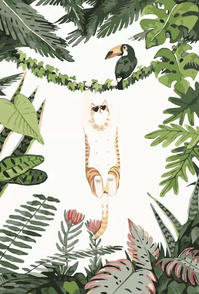 Kat en Papegaai in het Bos Schilderen op Nummers