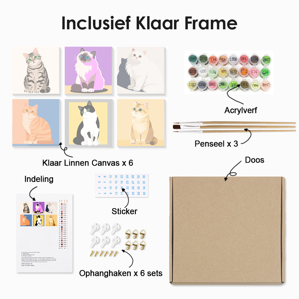 Stille Katten 6 Stuks Mini Schilderen op Nummers