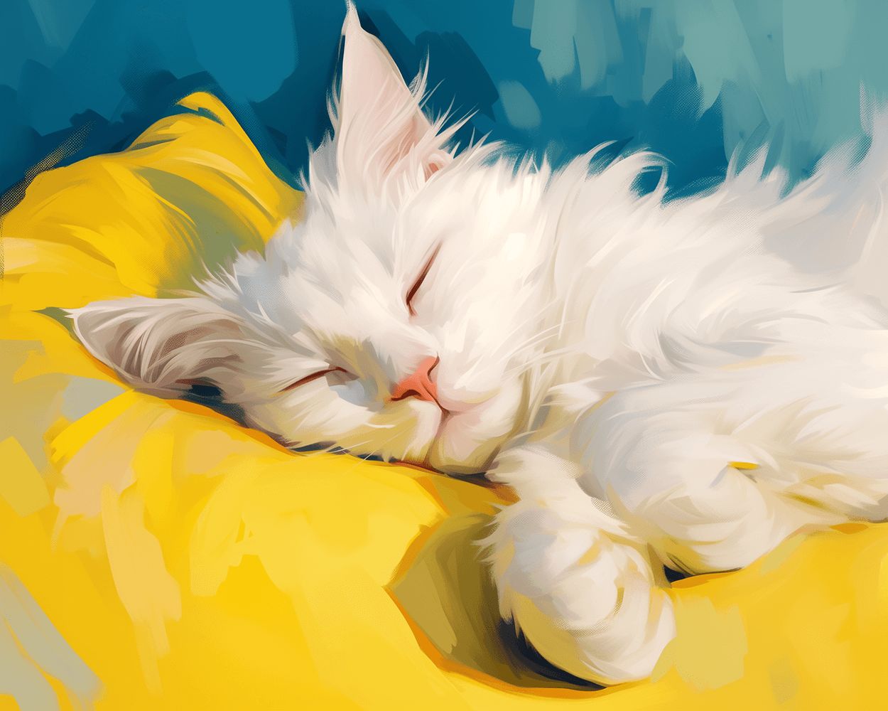 Witte Kat Slapend op Geel Kussen Schilderen op Nummers