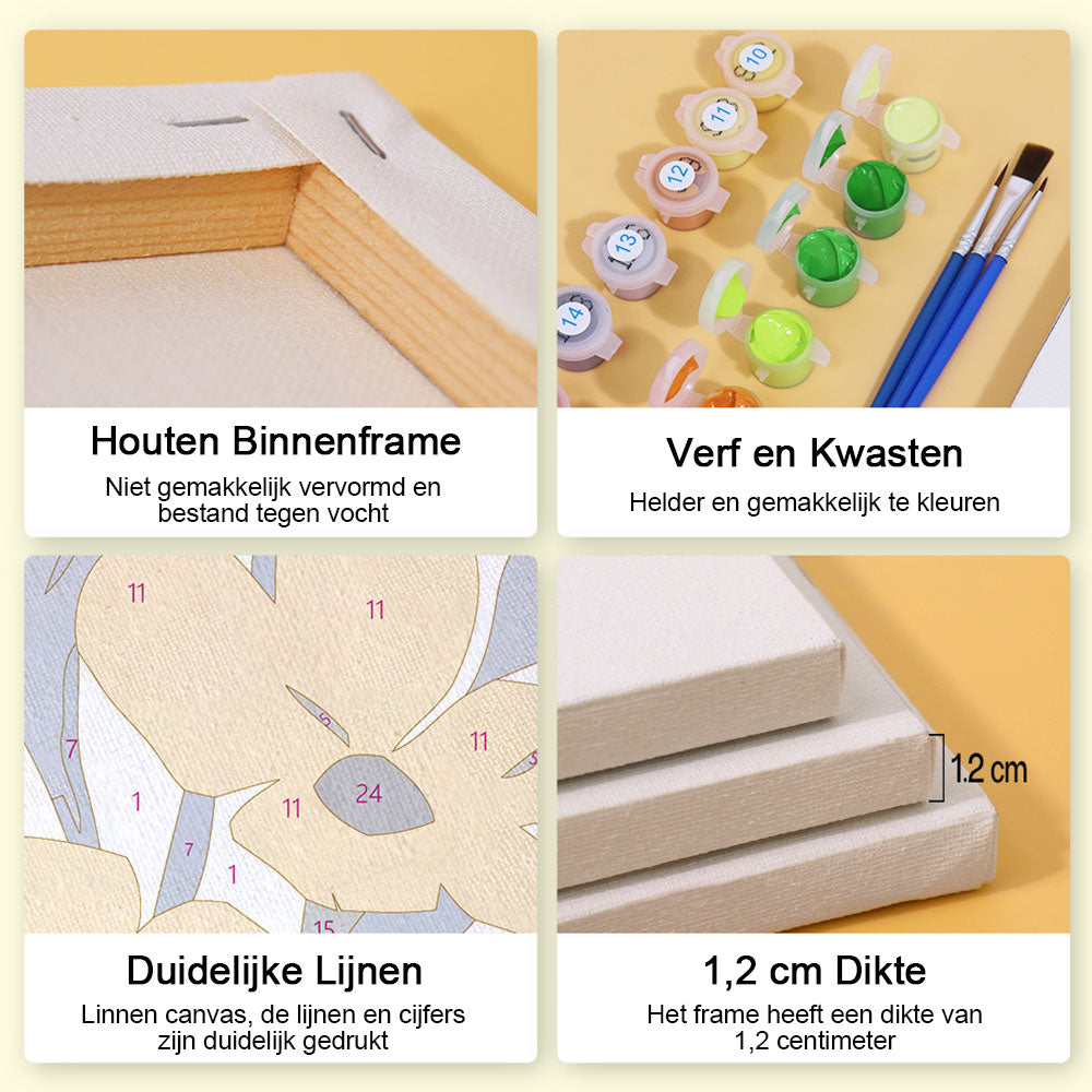 Gemakkelijk te schilderen - De set van Schilderen op nummers is gemakkelijk te gebruiken. Elk deel van het canvasdoek is genummerd en komt overeen met een kleur. Volg de instructies, schilder op nummer en maak de afbeelding af.
