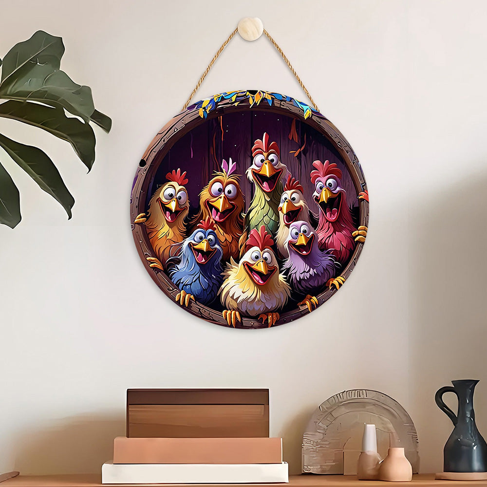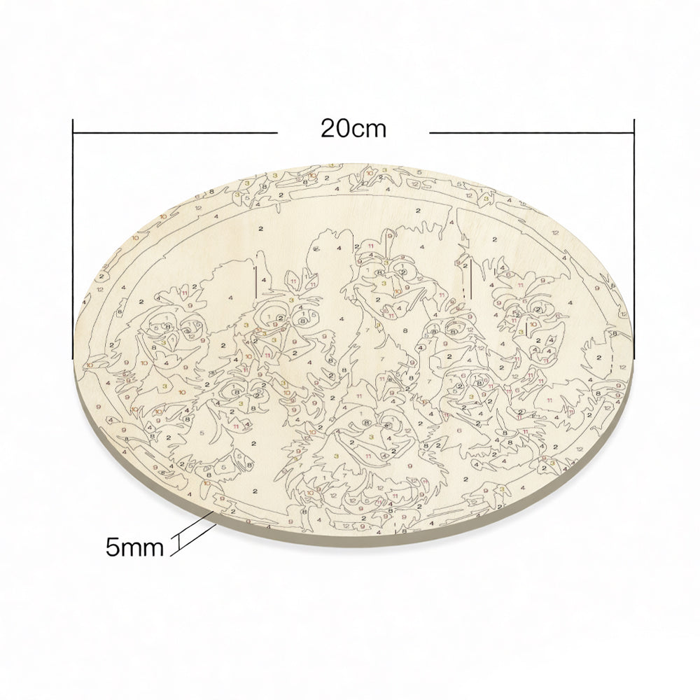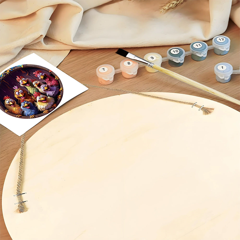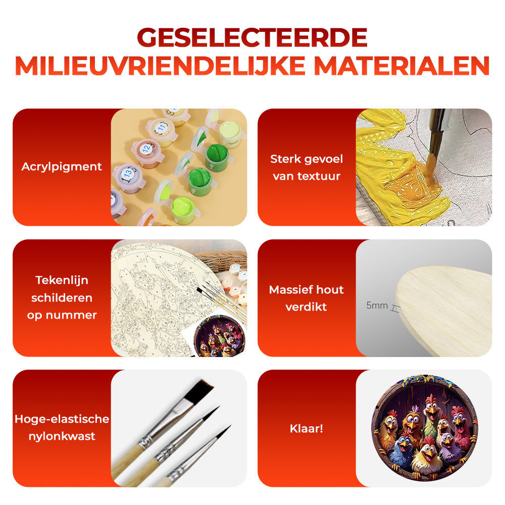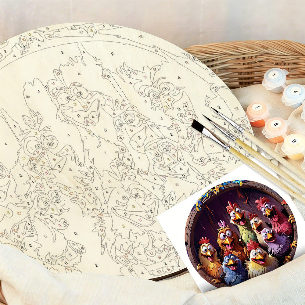 Houtschijf Schilderen op Nummers - Kleurrijke Haanen Zingen Vrolijk