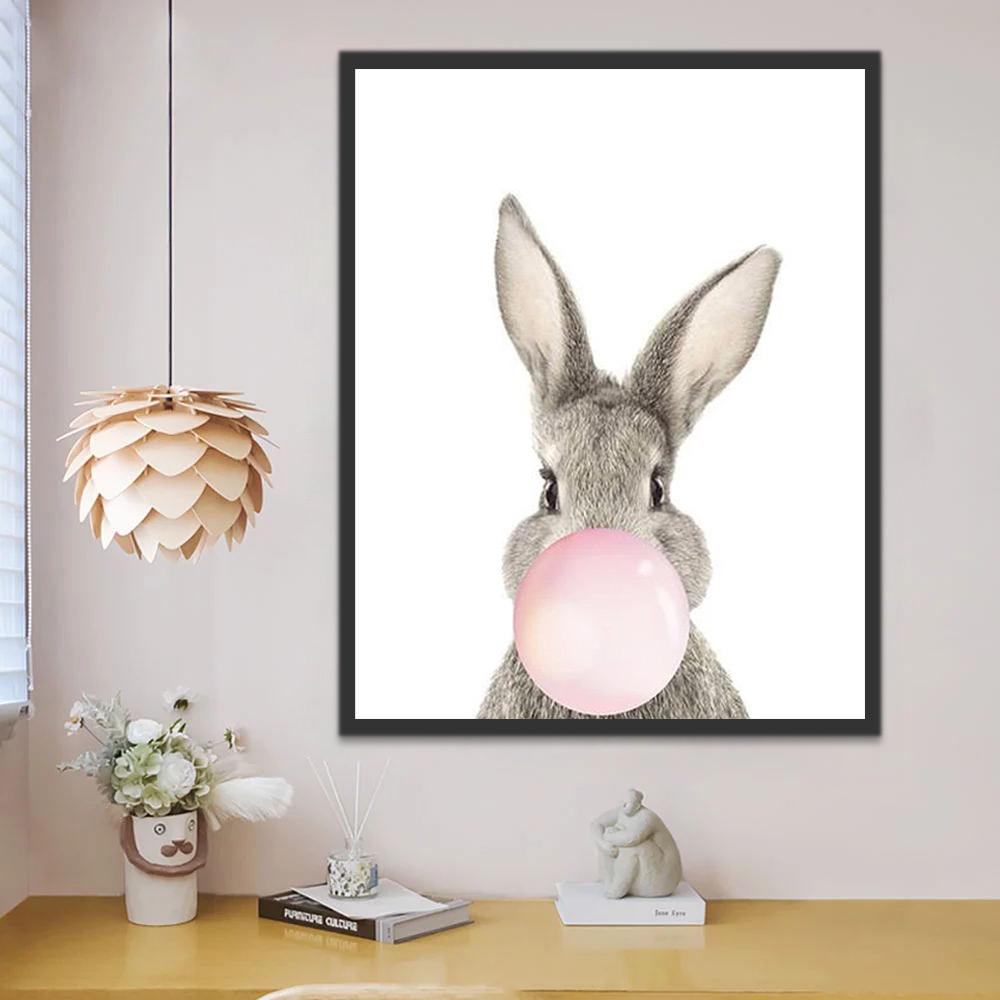 Konijn en Roze Kauwgom Schilderen op Nummers