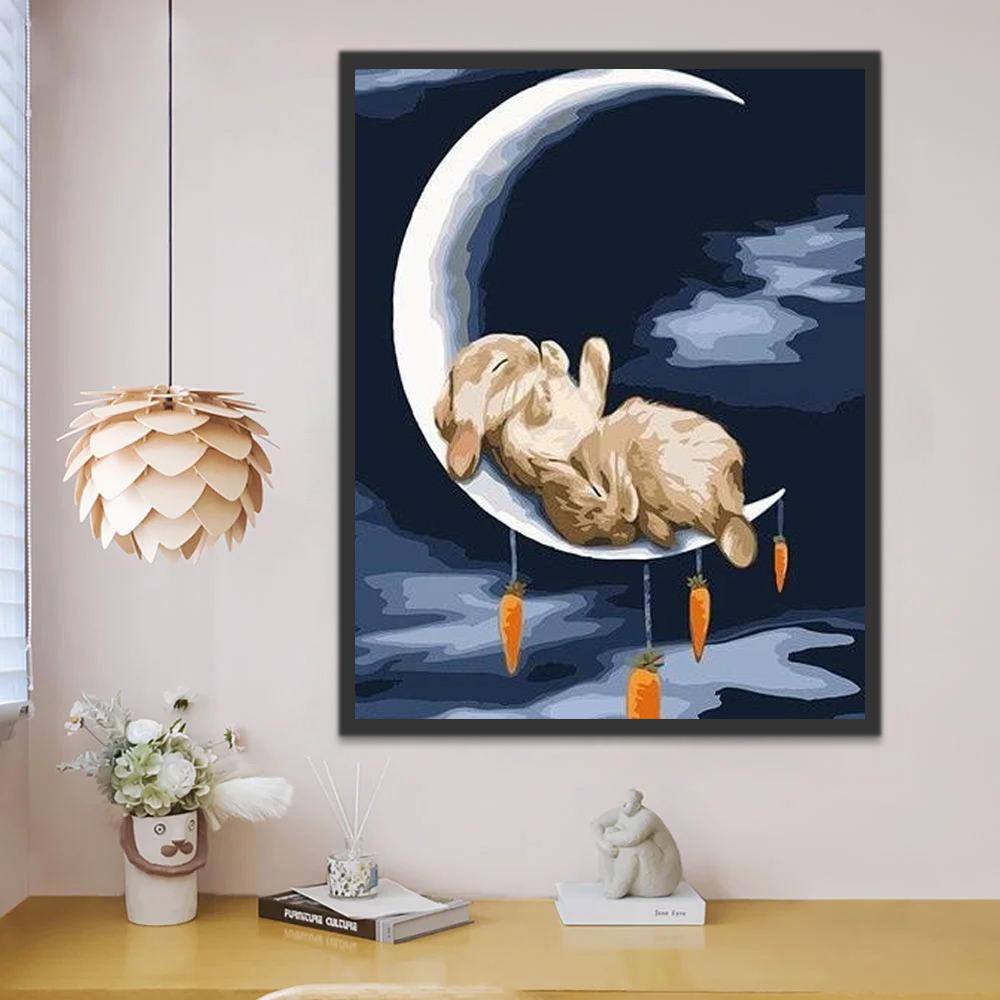 Konijn Slaapt op de Maan Schilderen op Nummers