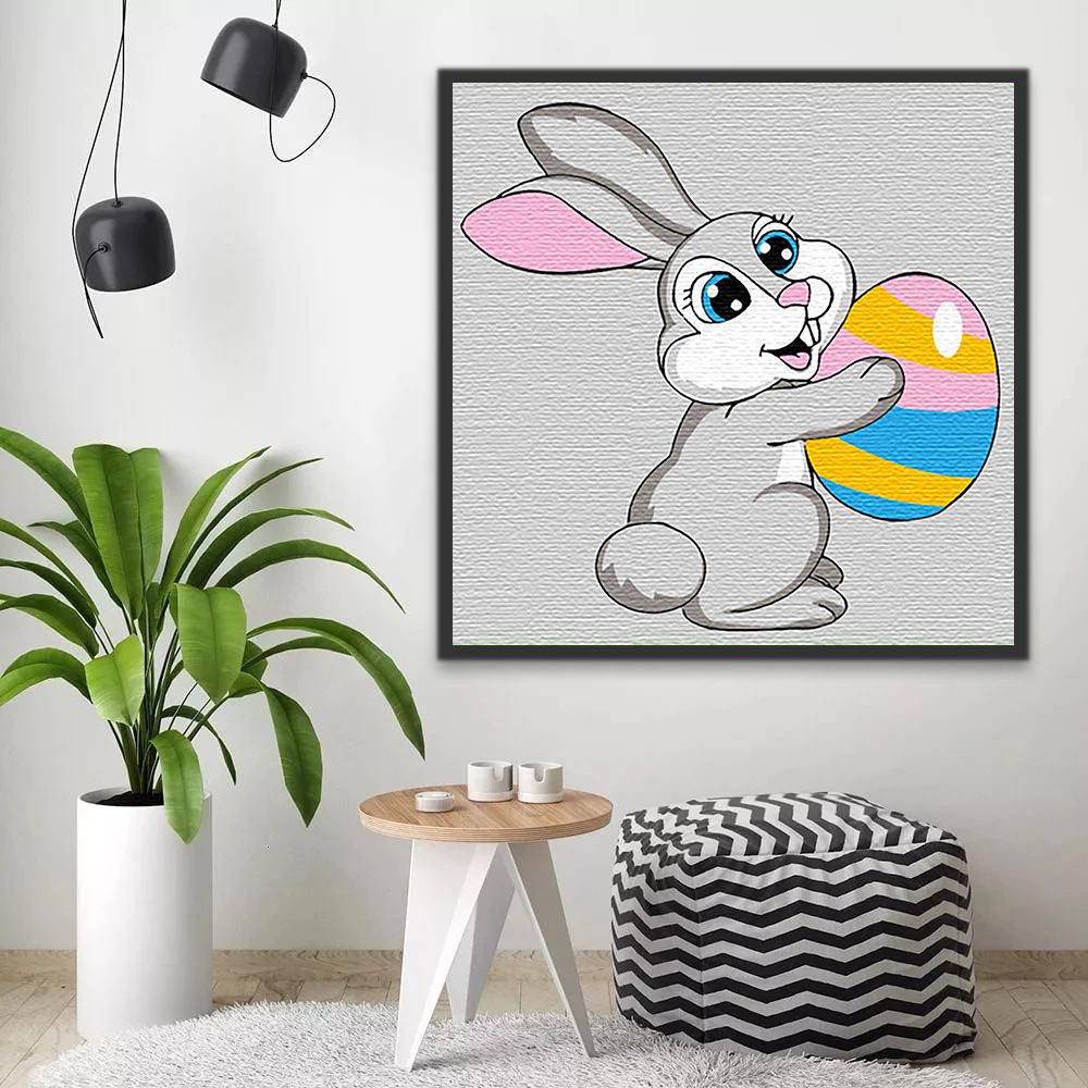 Grijs Konijn en Gekleurde Ei Schilderen op Nummers Kinderen