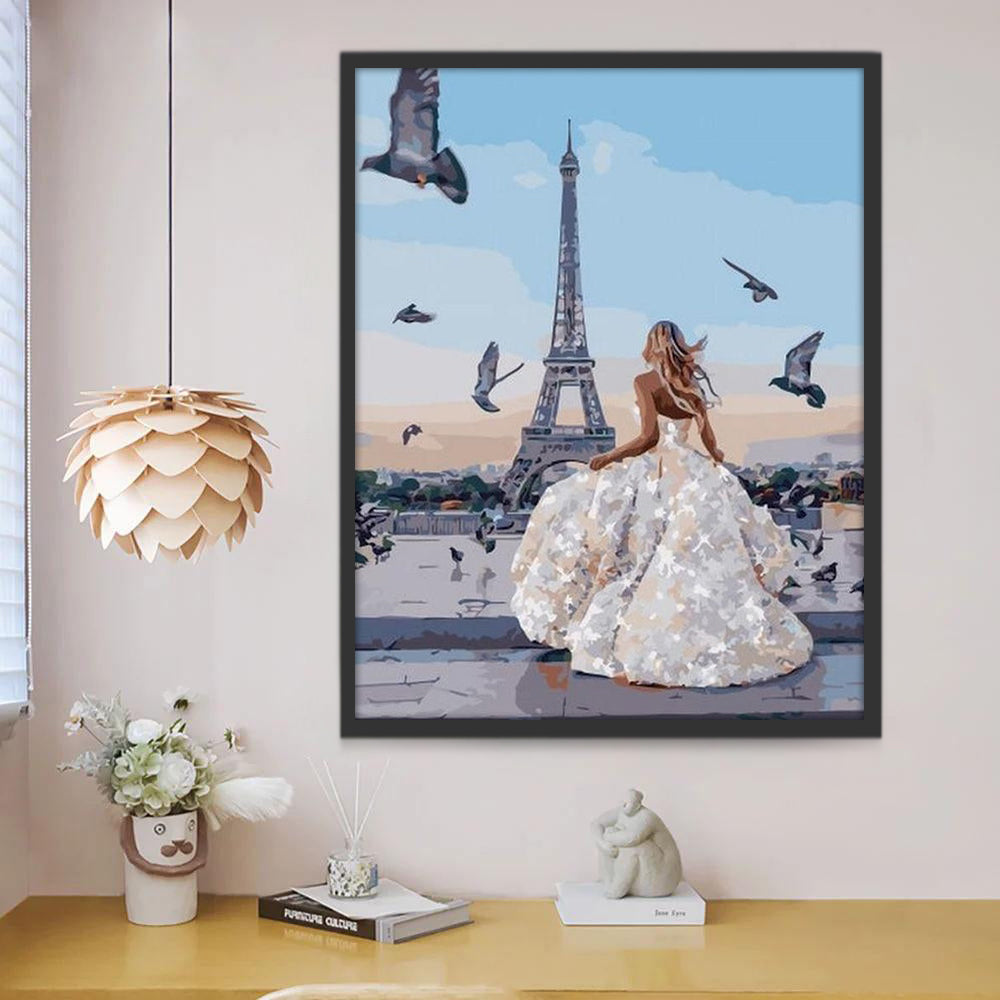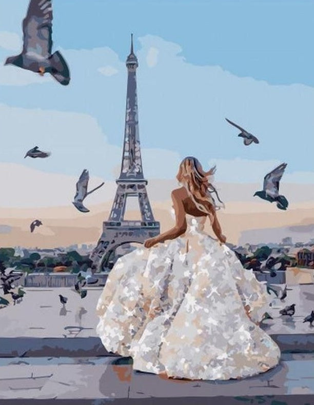 Witte Jurk onder de Eiffeltoren Schilderen op Nummers