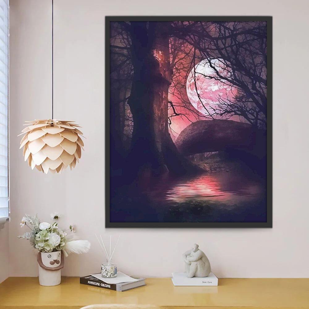 Boom op een Rode Maanverlichte Nacht Schilderen op Nummers