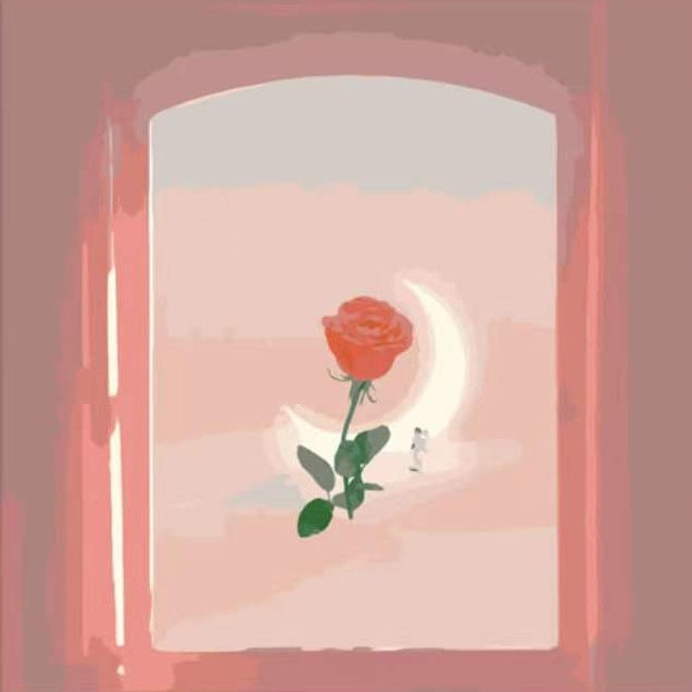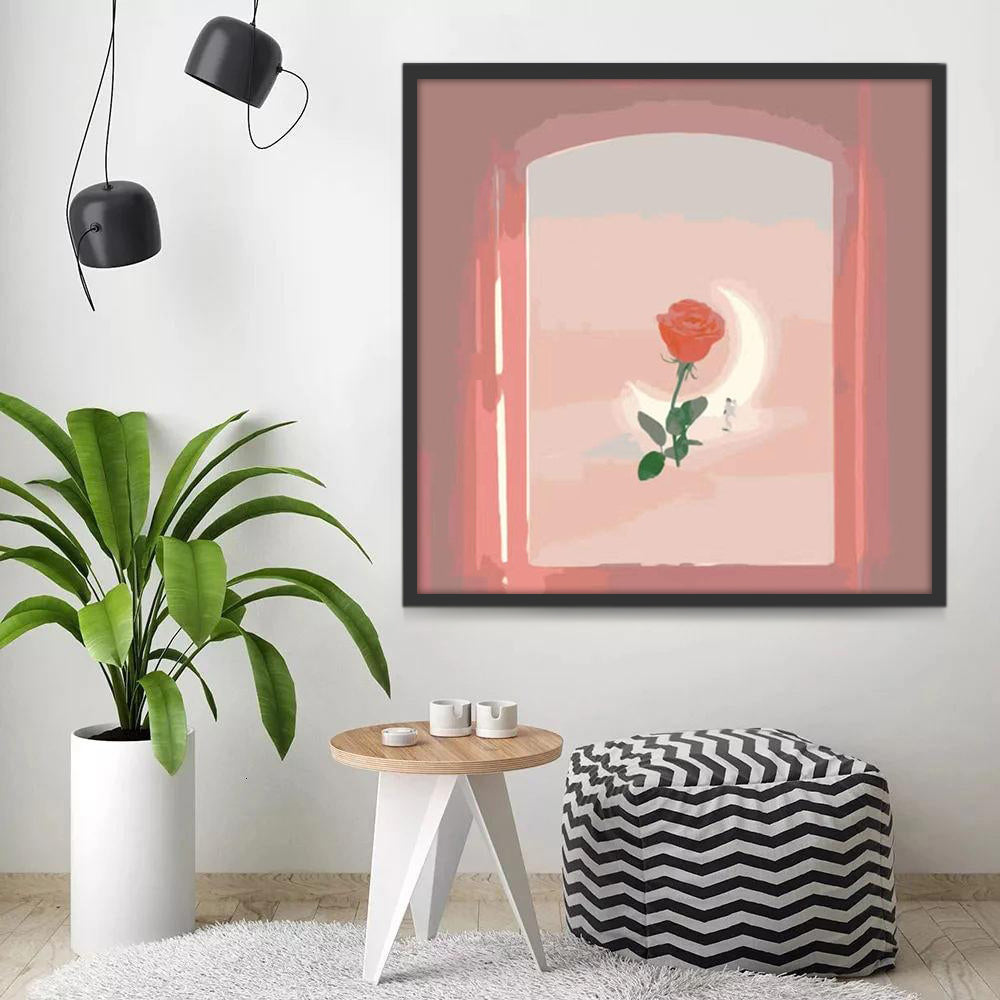 Maan en Roos in roze Raam Schilderen op Nummers