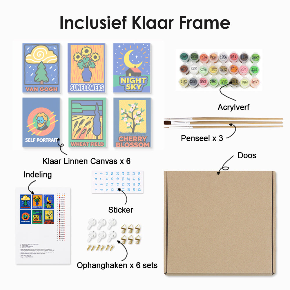 Van Goghs Blauwe Schilderijen 6 Stuks Mini Schilderen op Nummers