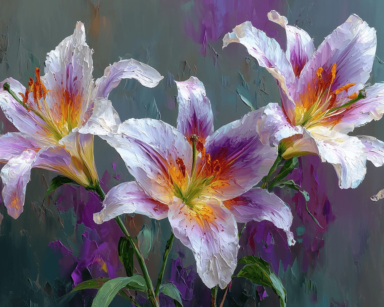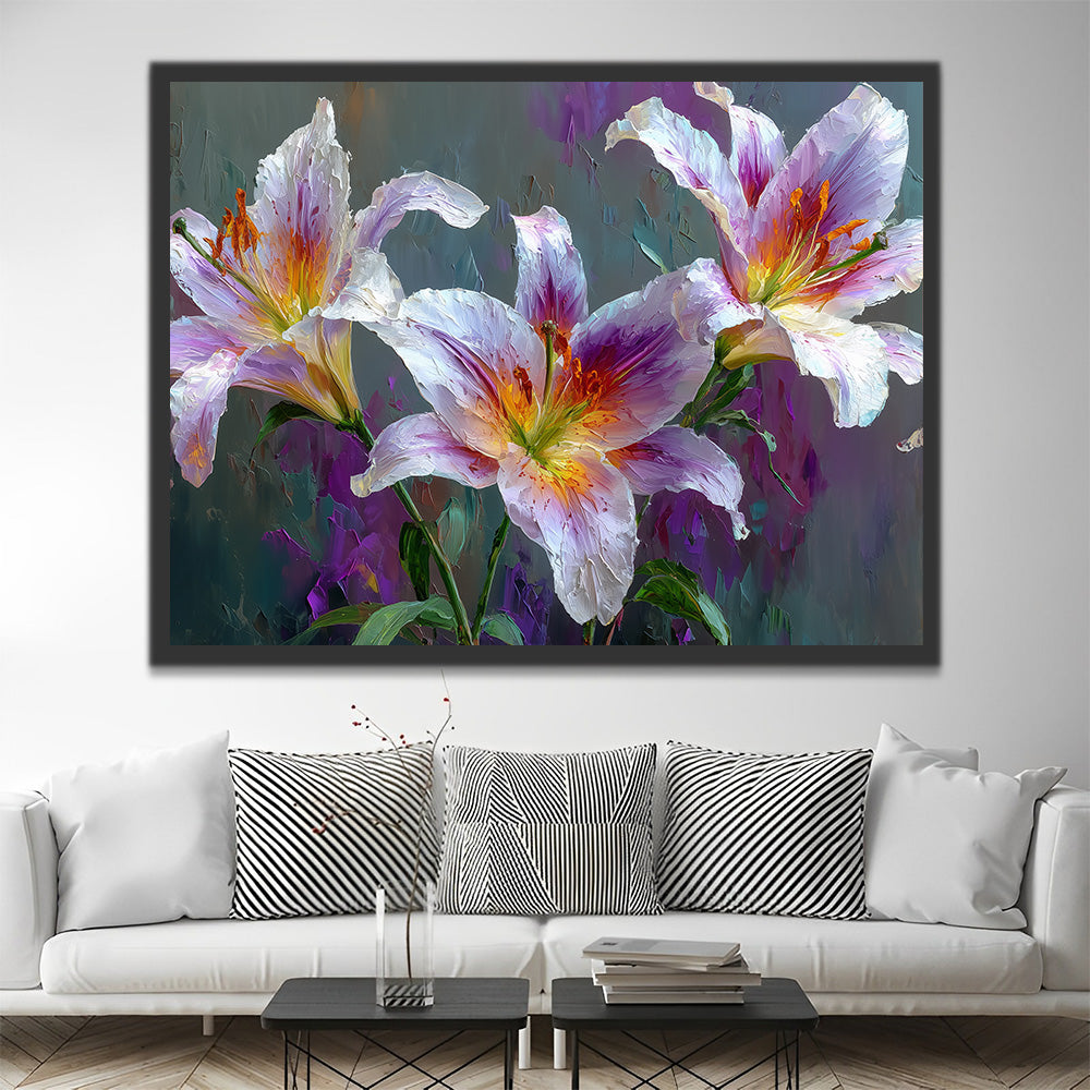 Drie Witte en Paarse Lelies Schilderen op Nummers