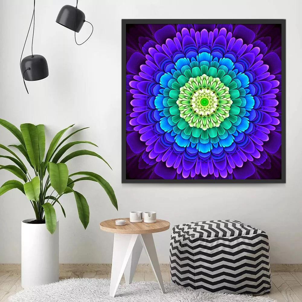 Vibrerend Paars-Blauw Bloemontwerp Schilderen op Nummers